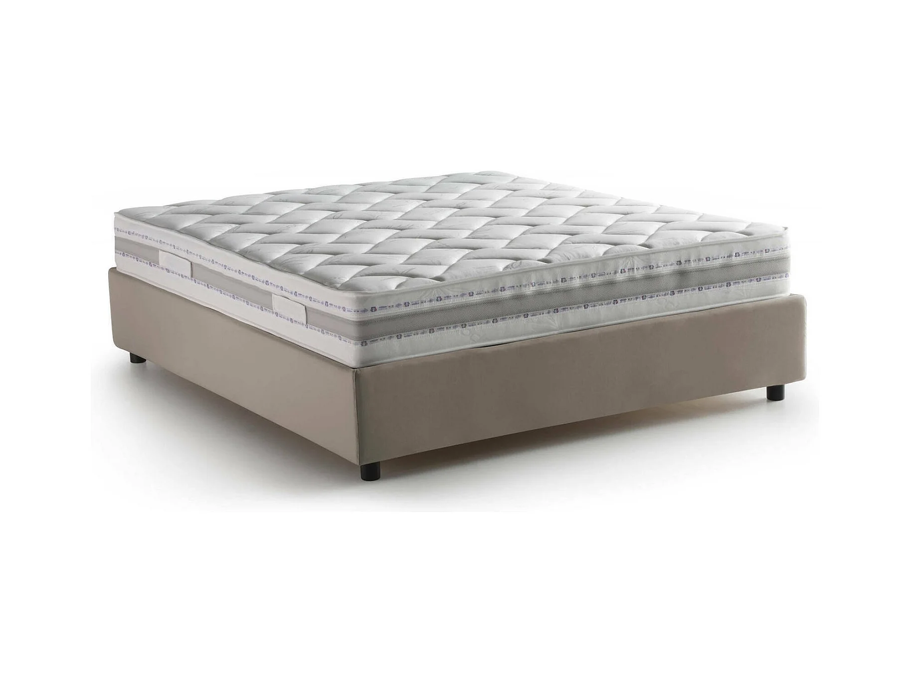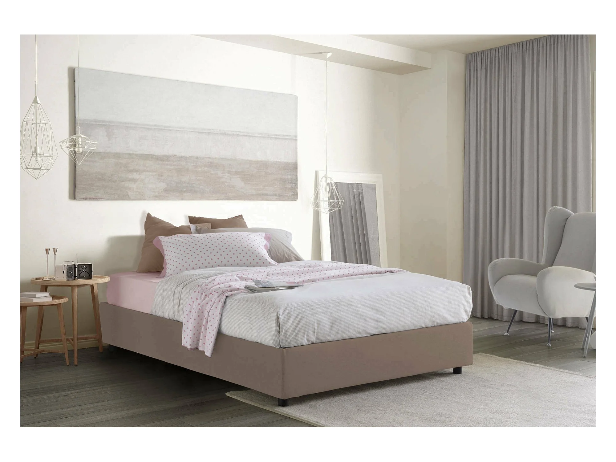 Lit double Daajj, Lit coffre avec revêtement en tissu, 100% Made in Italy, Ouverture frontale, avec matelas 140x190 cm inclus, Taupe