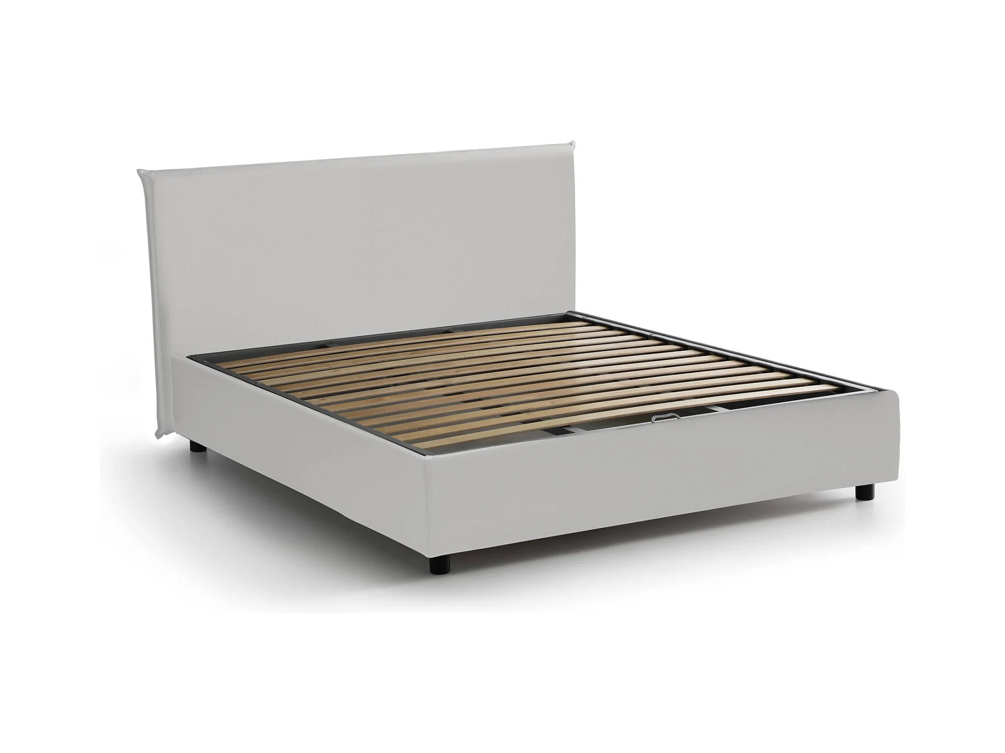Lit double Dacut, Lit coffre avec revêtement en éco-cuir, 100% Made in Italy, Ouverture frontale, avec matelas 140x190 cm inclus, Blanc