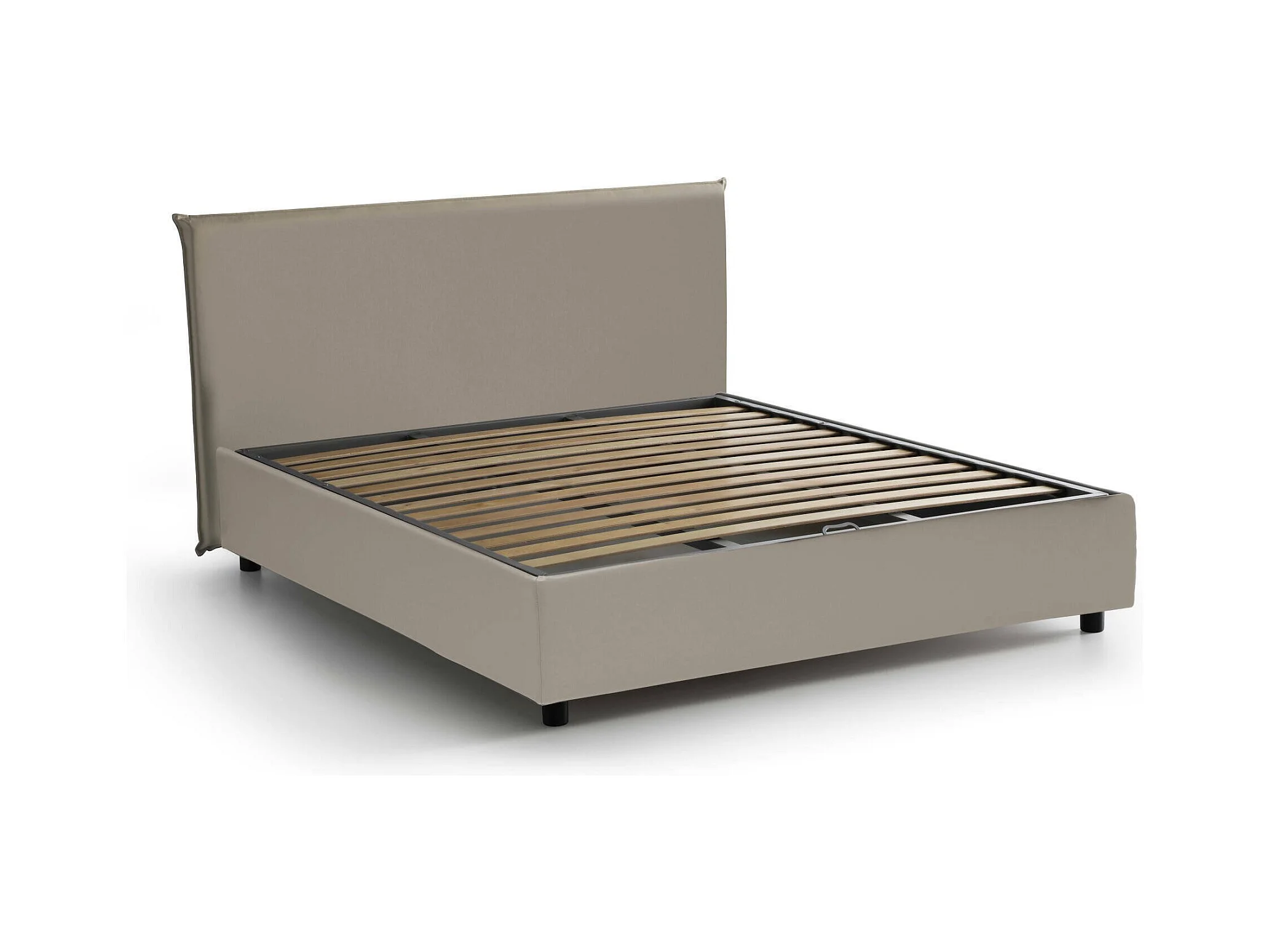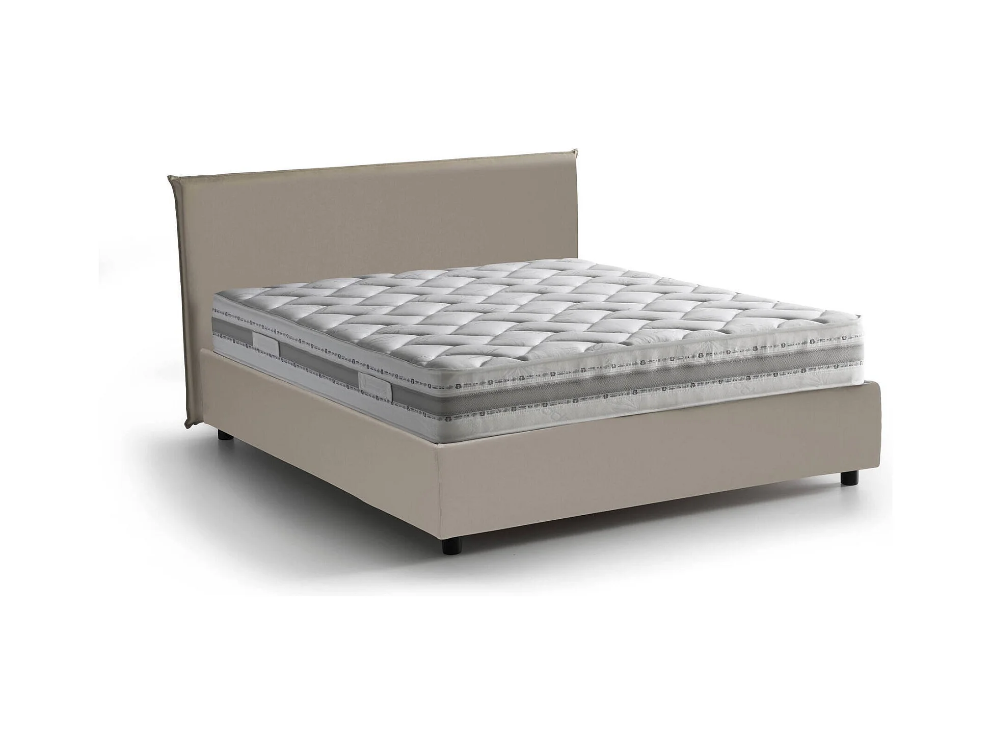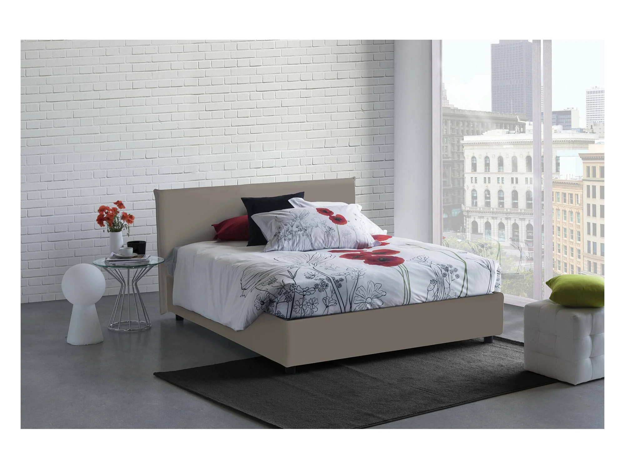 Lit double Dacut, Lit coffre avec revêtement en éco-cuir, 100% Made in Italy, Ouverture frontale, avec matelas 140x190 cm inclus, Taupe