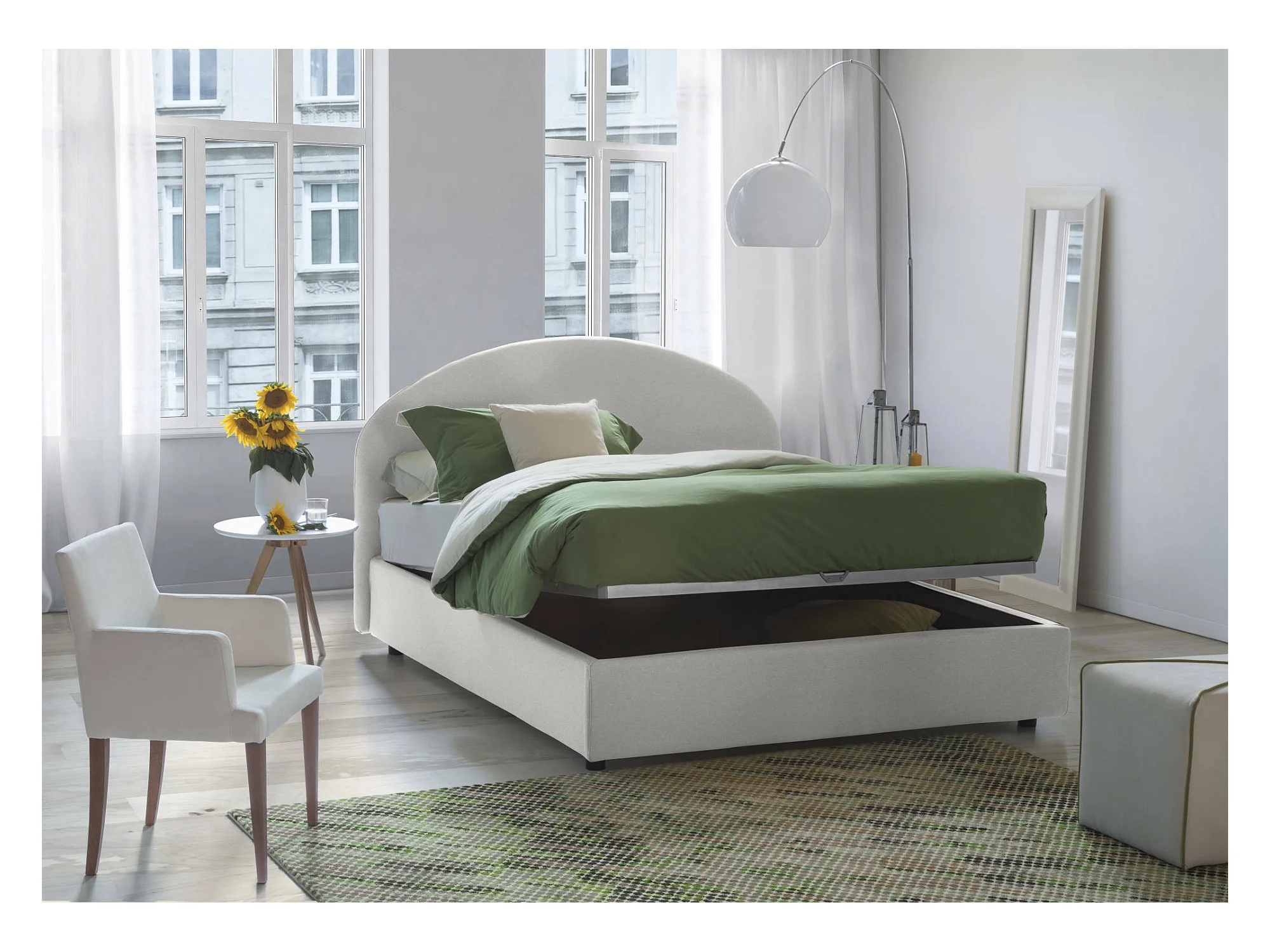 Lit double Dadamol, Lit coffre avec revêtement en tissu, 100% Made in Italy, Ouverture frontale, avec matelas 160x200 cm inclus, Blanc