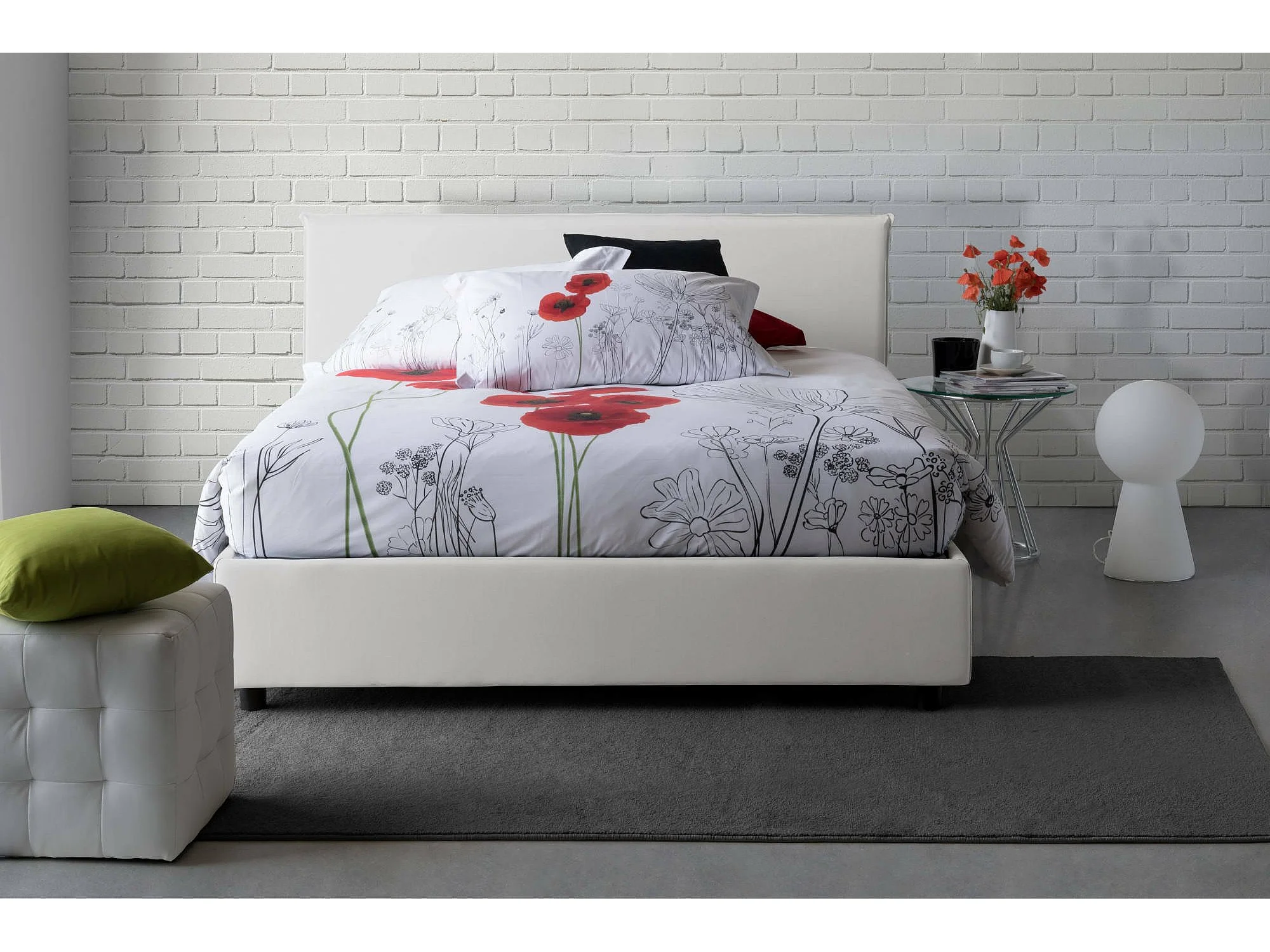 Lit double Dalfons, Lit coffre avec revêtement en tissu, 100% Made in Italy, Ouverture frontale, adapté pour matelas 140x200 cm, Blanc