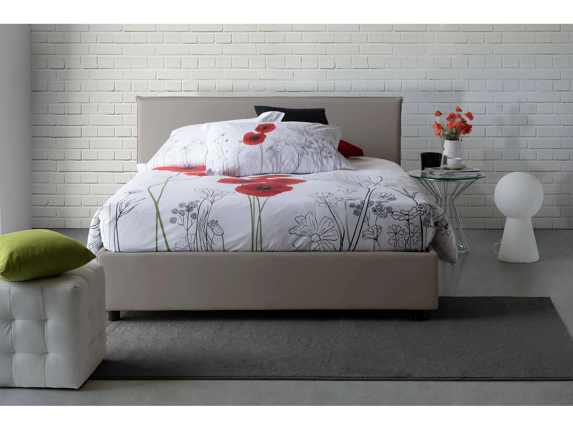 Lit double Dallegr, Lit coffre avec revêtement en tissu, 100% Made in Italy, Ouverture frontale, avec matelas 140x200 cm inclus, Taupe