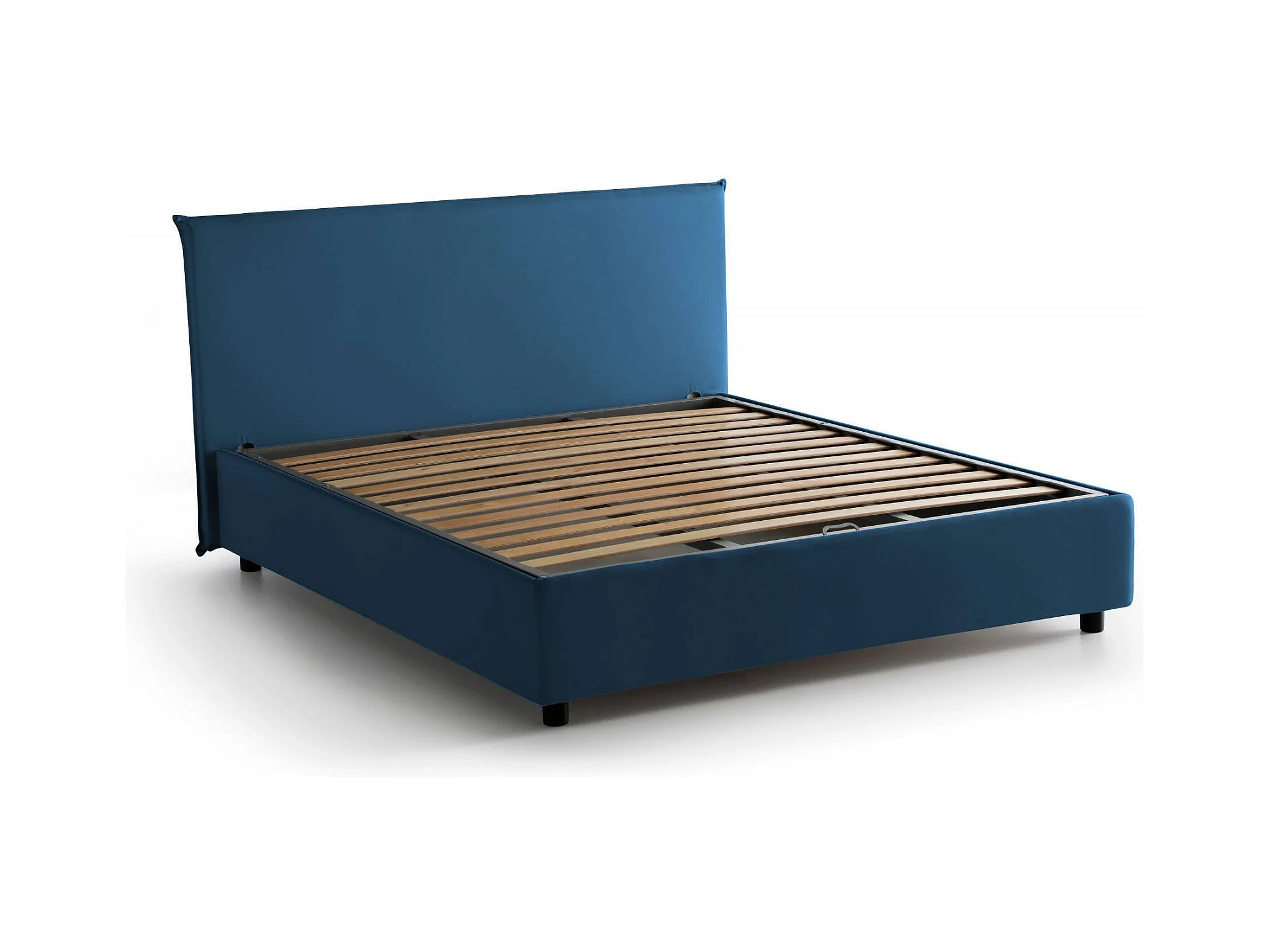 Lit double Dame, Lit coffre avec revêtement en tissu, 100% Made in Italy, Ouverture frontale, avec matelas 160x190 cm inclus, Bleu