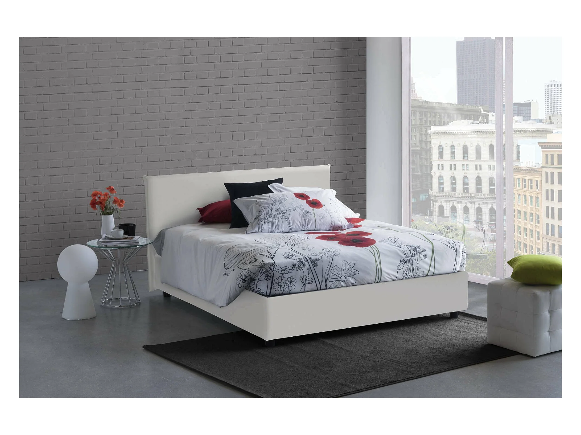 Lit double Dancor, Lit coffre avec revêtement en éco-cuir, 100% Made in Italy, Ouverture frontale, avec matelas 160x200 cm inclus, Blanc