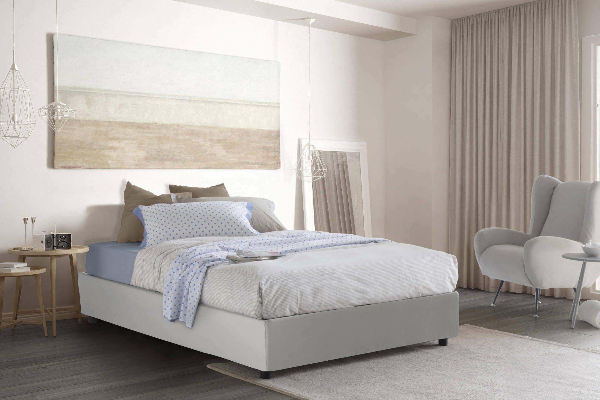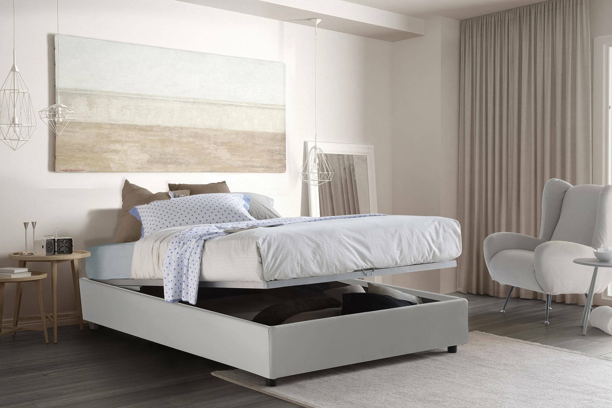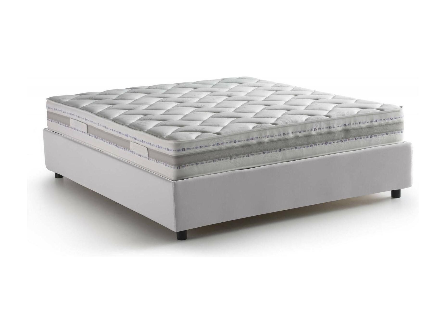 Lit double Dbaci, Lit coffre avec revêtement en éco-cuir, 100% Made in Italy, Ouverture frontale, avec matelas 160x190 cm inclus, Blanc