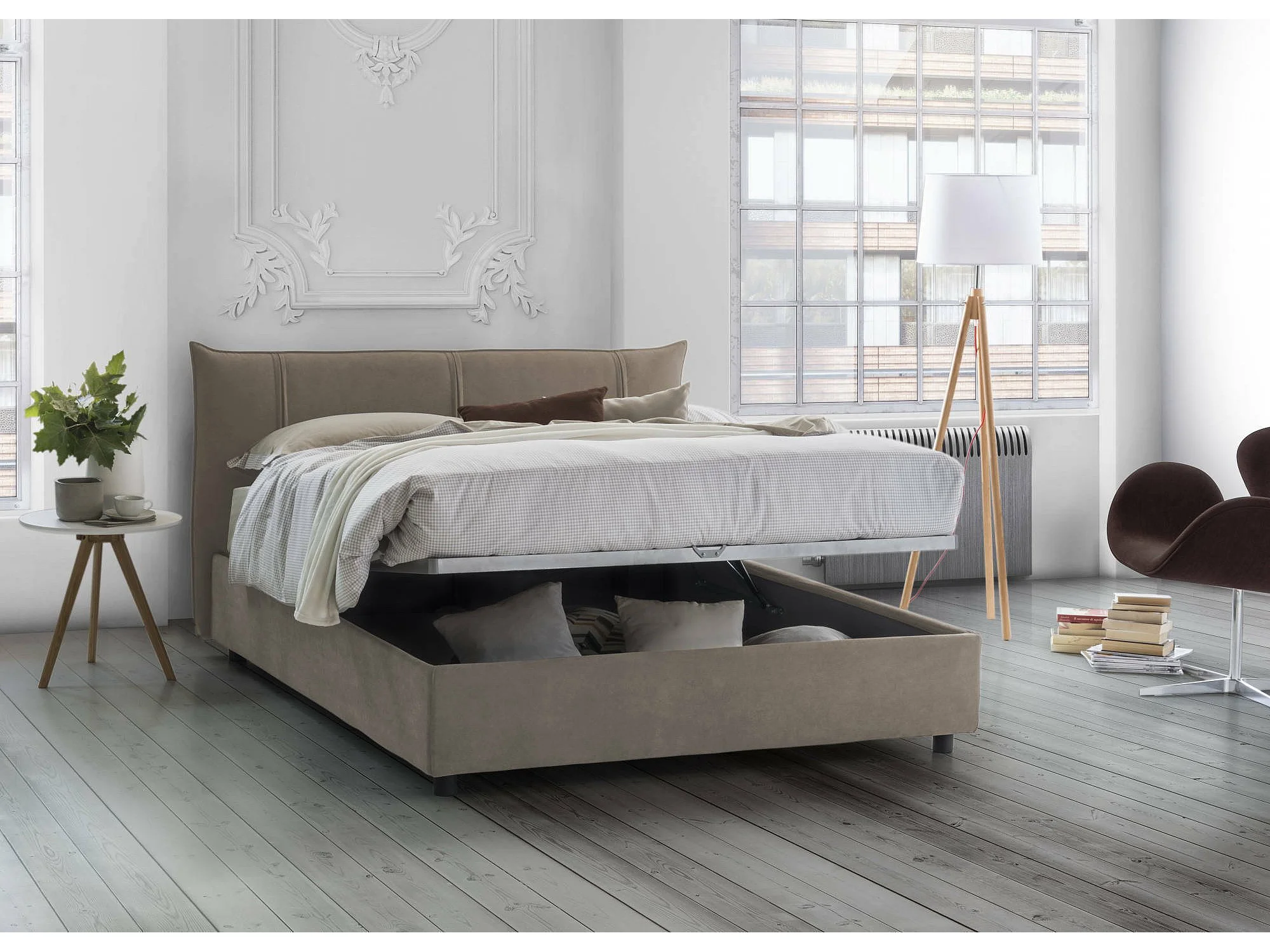 Lit double Dbadel, Lit coffre avec revêtement en tissu, 100% Made in Italy, Ouverture frontale, adapté pour matelas 160x190 cm, Taupe