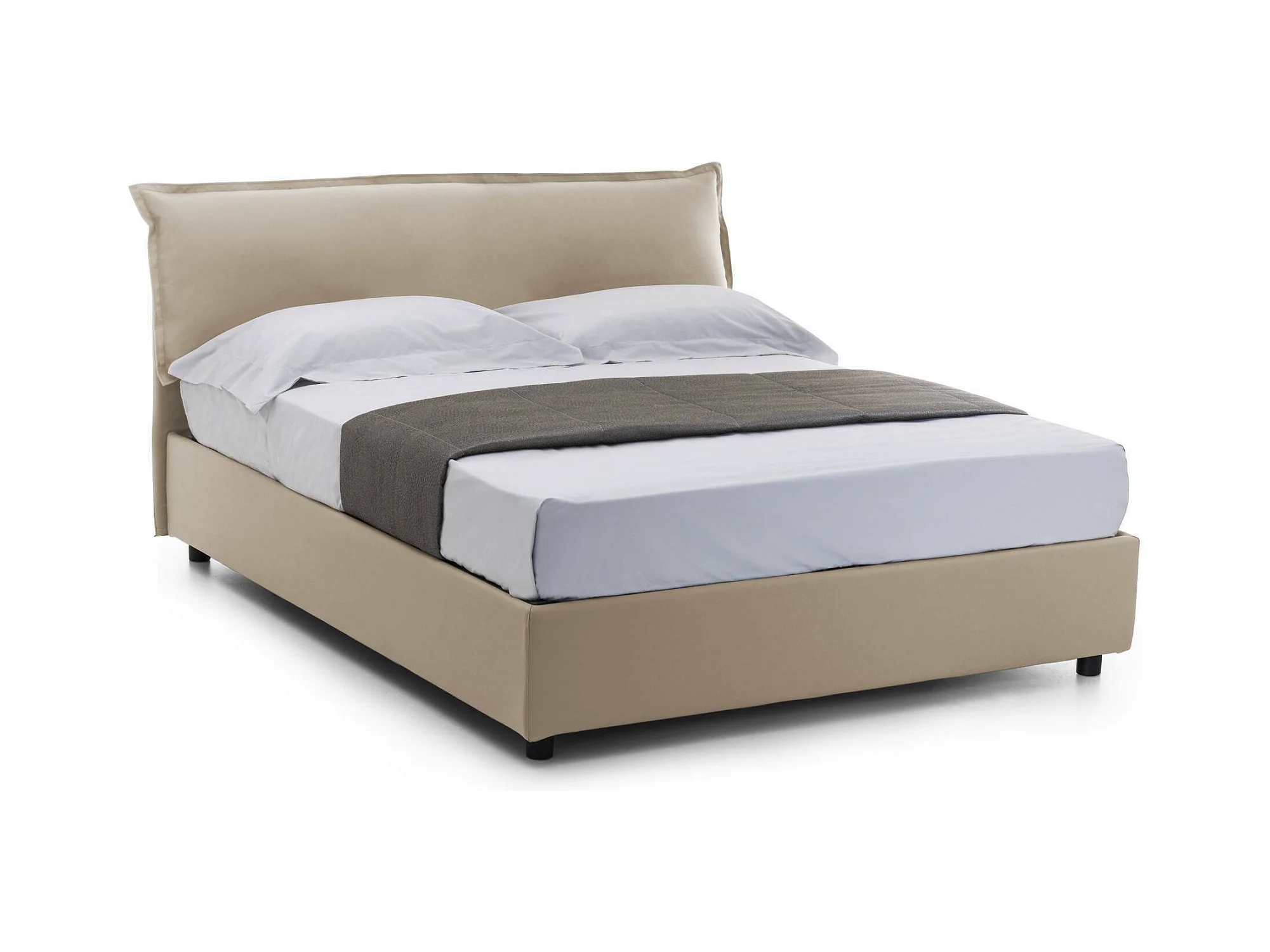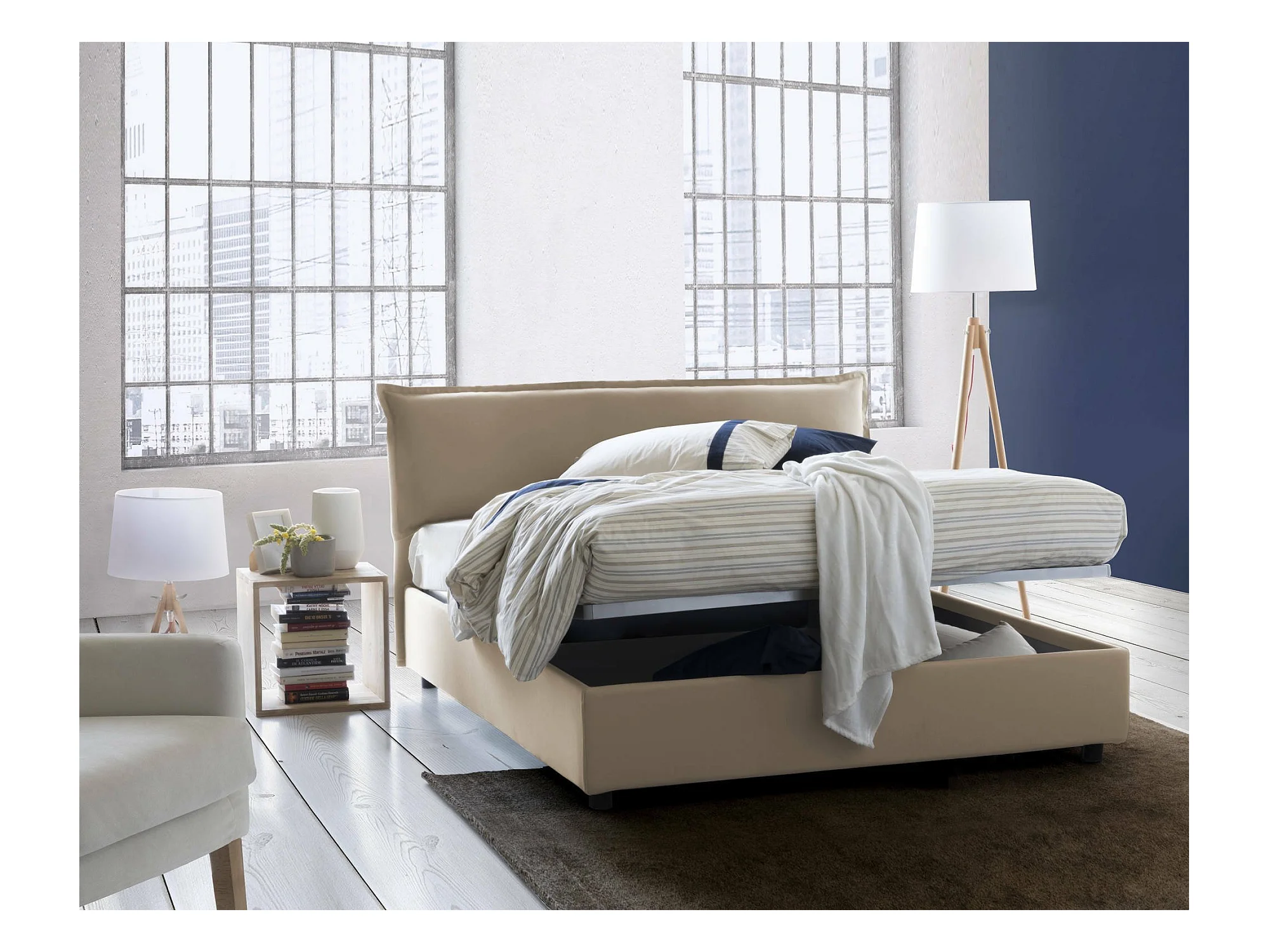 Lit double Dbianc, lit coffre avec revêtement amovible avec tête de lit rembourrée et cadre de lit coffre, 100% Made in Italy, avec matelas 160x190 cm inclus, Beige