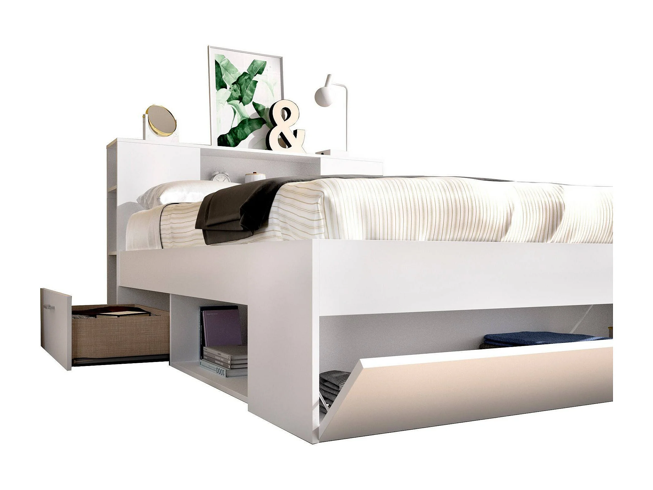 Lit double Dconner, Sommier pour chambre, Literie par chambre, Support de matelas, 150x219 h95 cm, Blanc