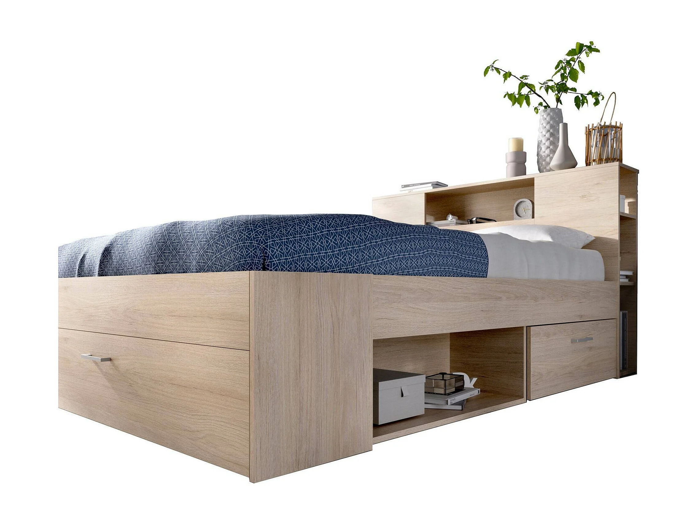Lit double Dconner, Sommier pour chambre, Literie par chambre, Support de matelas, 150x219 h95 cm, Chêne clair