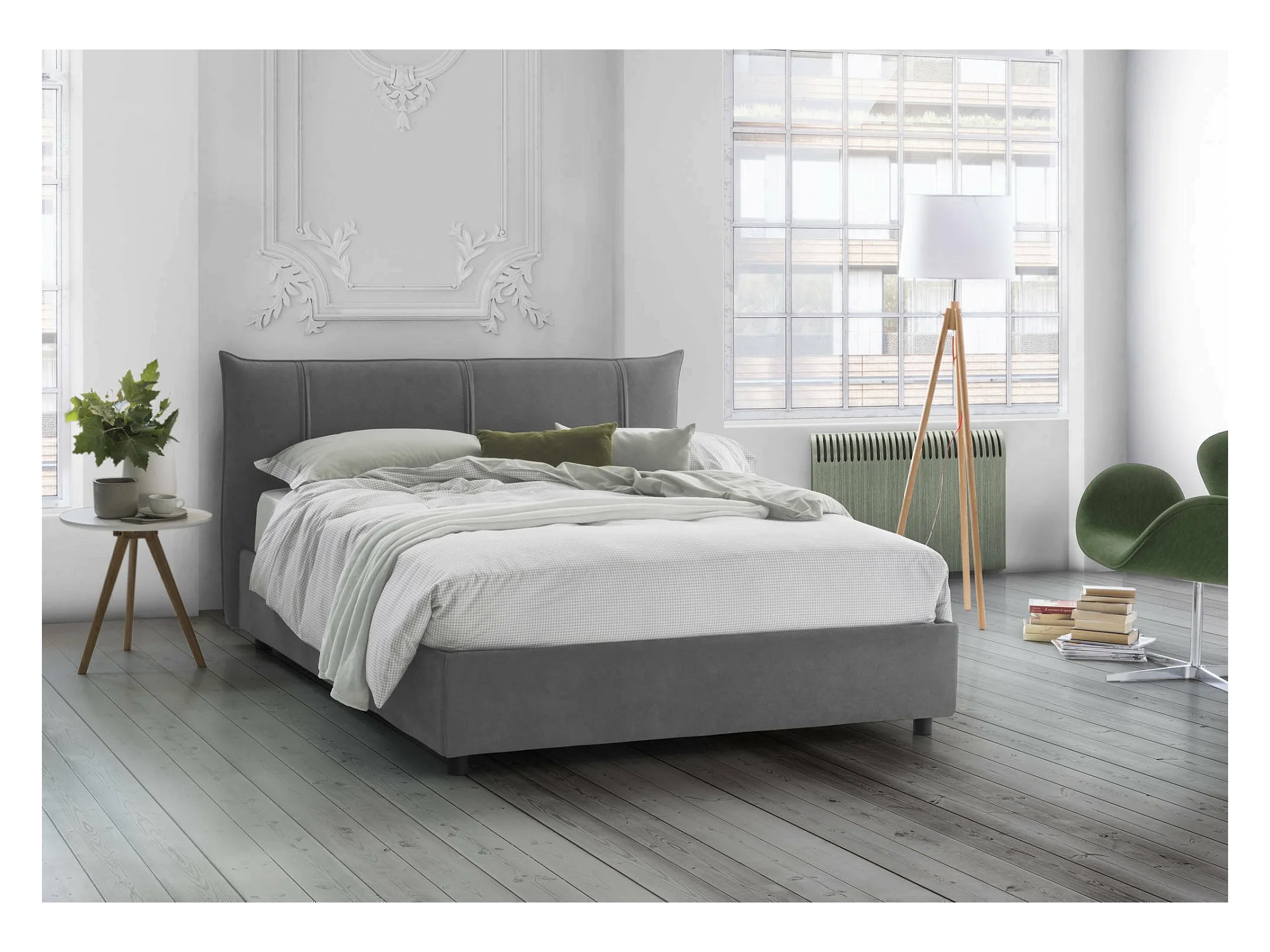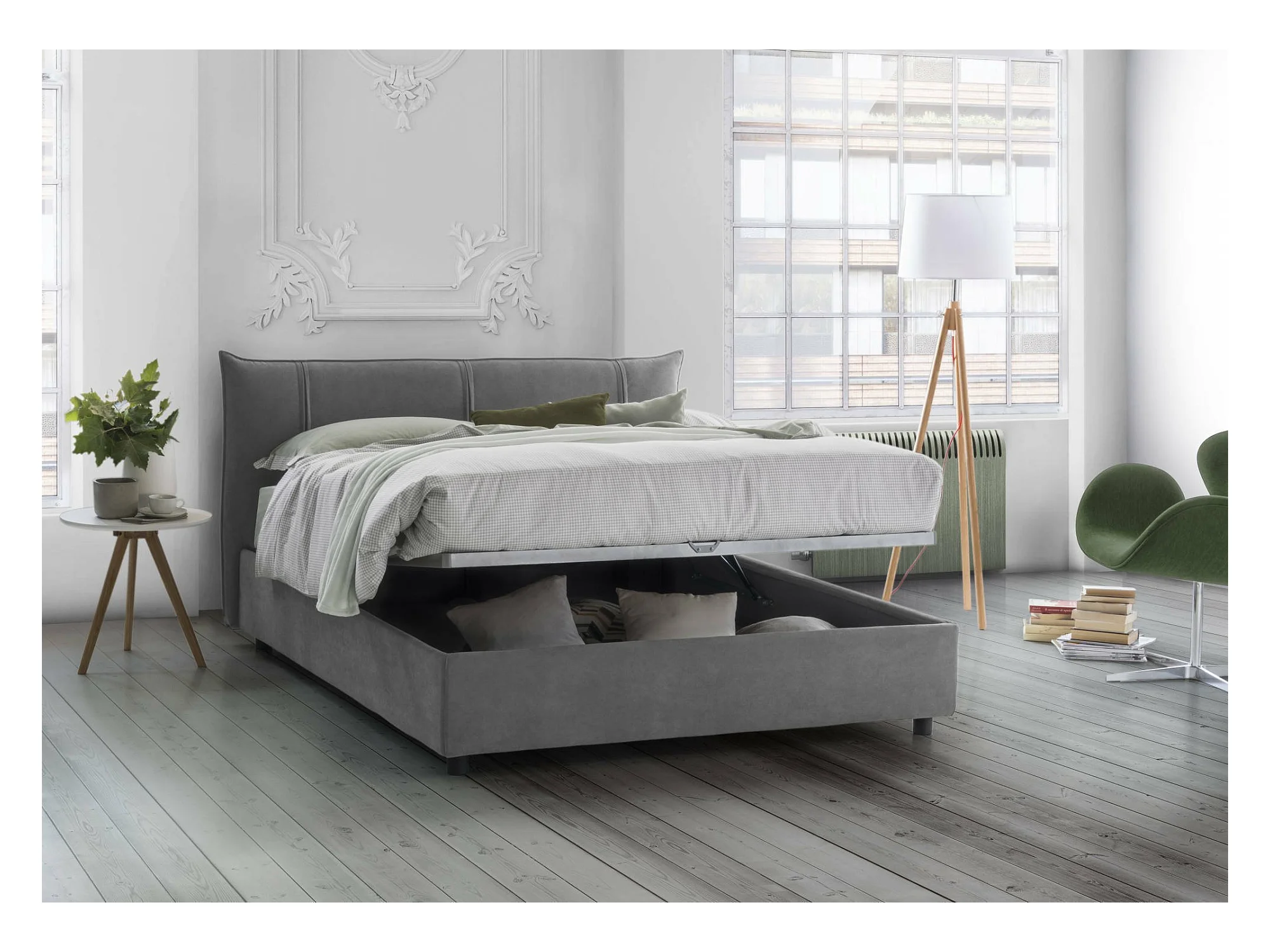 Lit double Ddaiv, Lit coffre avec revêtement en tissu, 100% Made in Italy, Ouverture frontale, avec matelas 160x190 cm inclus, Gris