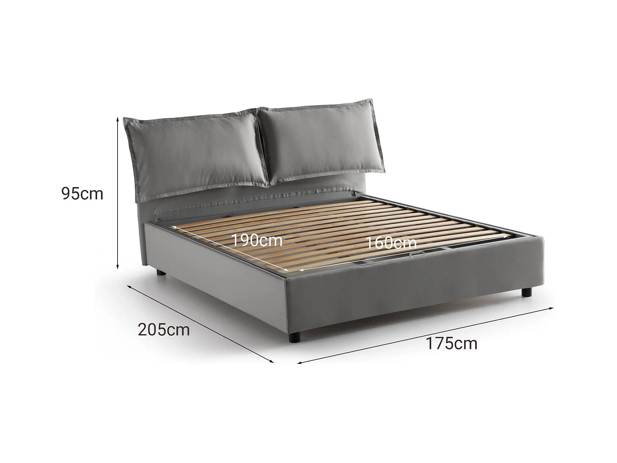 Lit double Dcaprar, Lit coffre avec revêtement en tissu, 100% Made in Italy, Ouverture frontale, adapté pour matelas 160x190 cm, Gris