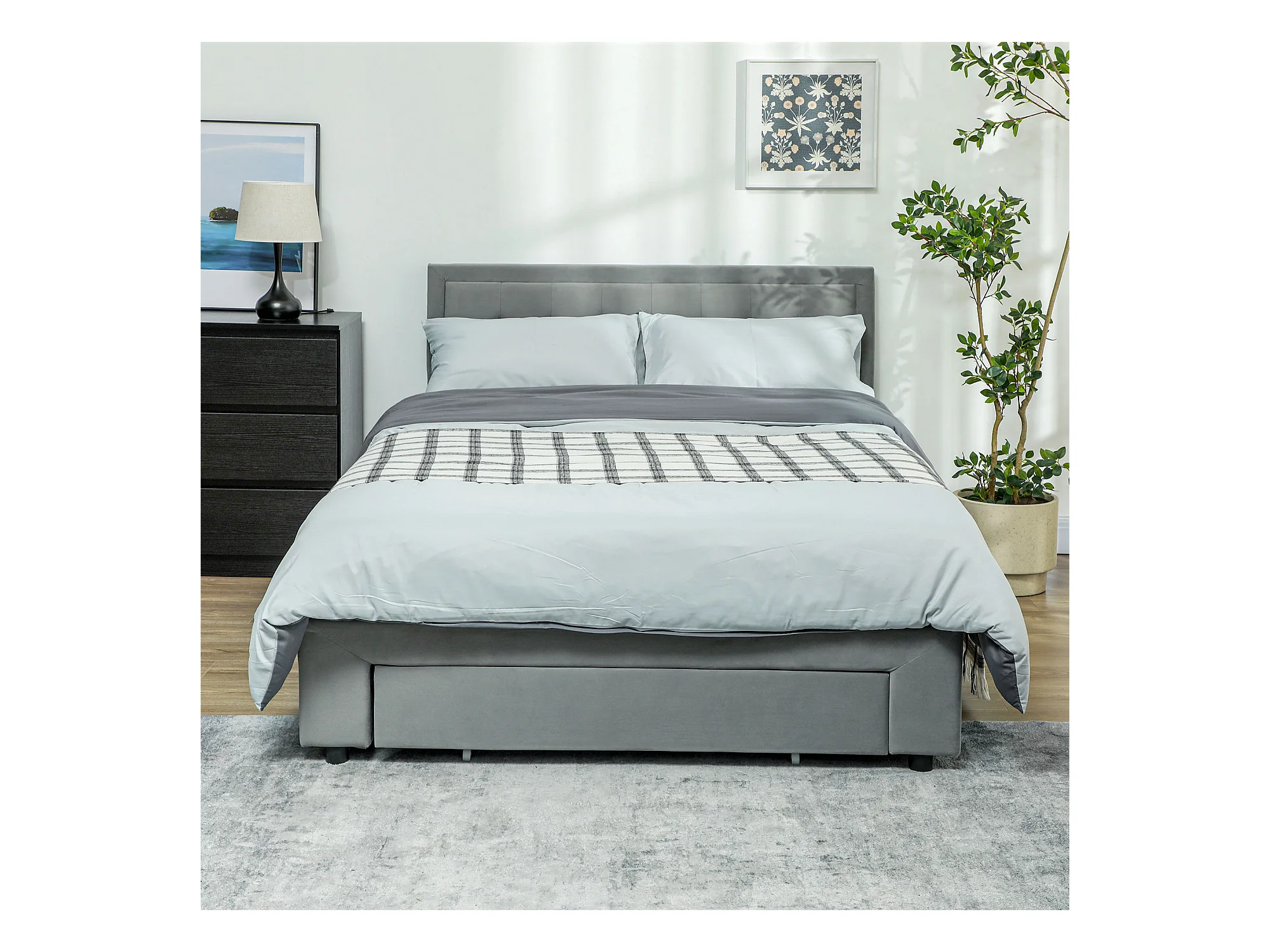 Lit double coffre - tête de lit, pied de lit et sommier - compatible matelas 140 x 200 cm - velours gris