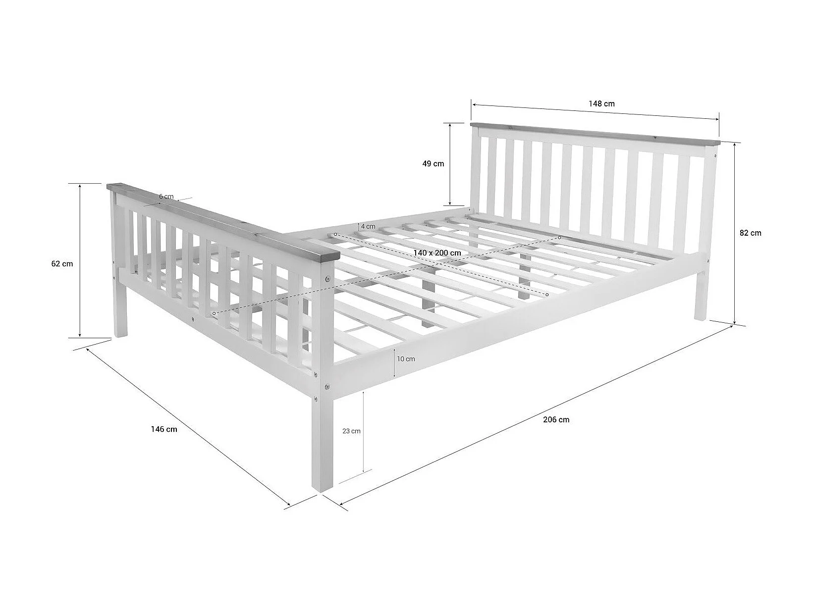 Lit double deux personne bois marron 206 x 146 x 82 cm LIT06159