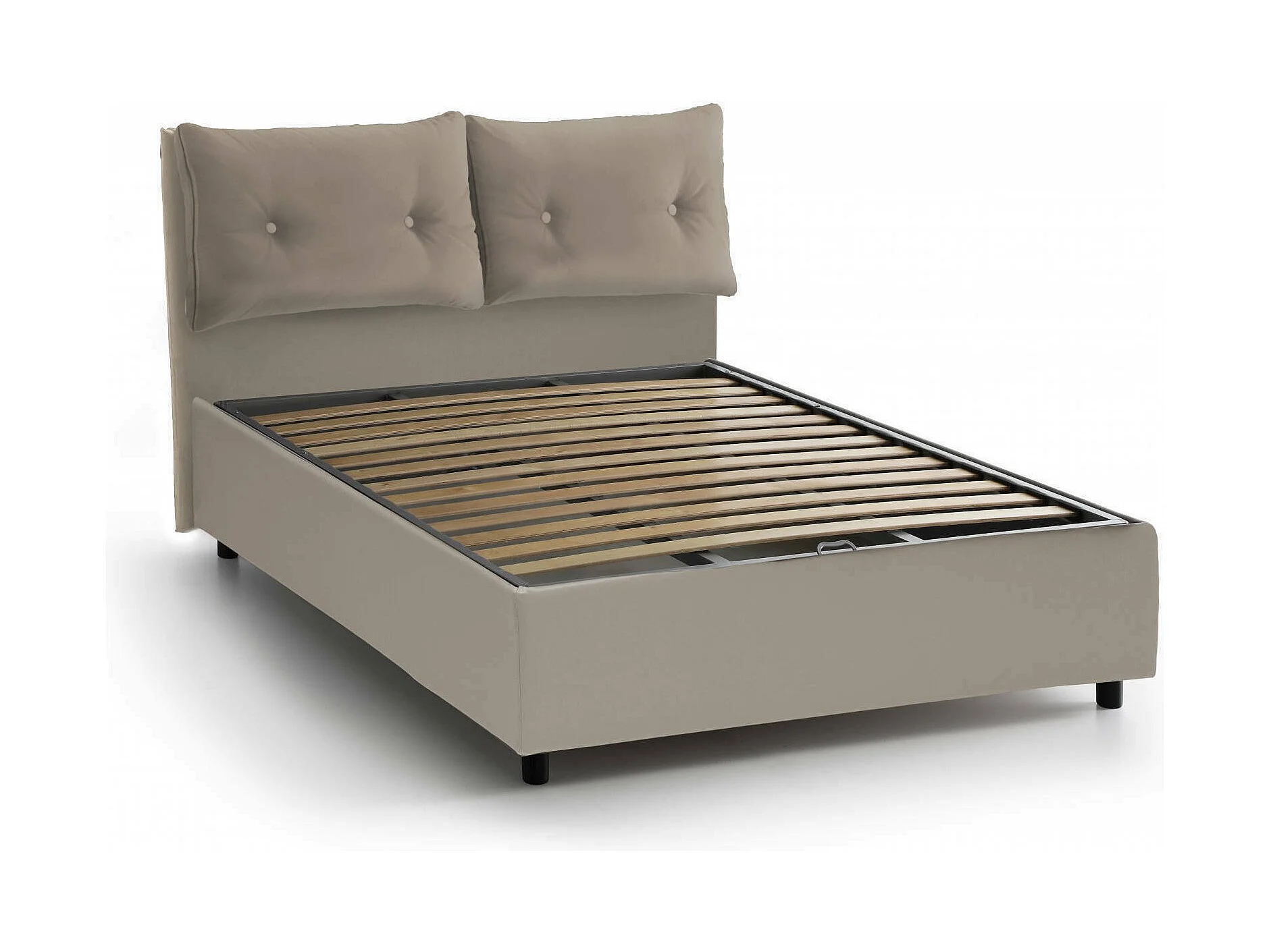 Lit double Dkasiu, Lit coffre avec revêtement en éco-cuir, 100% Made in Italy, Ouverture frontale, avec matelas 160x200 cm inclus, Taupe