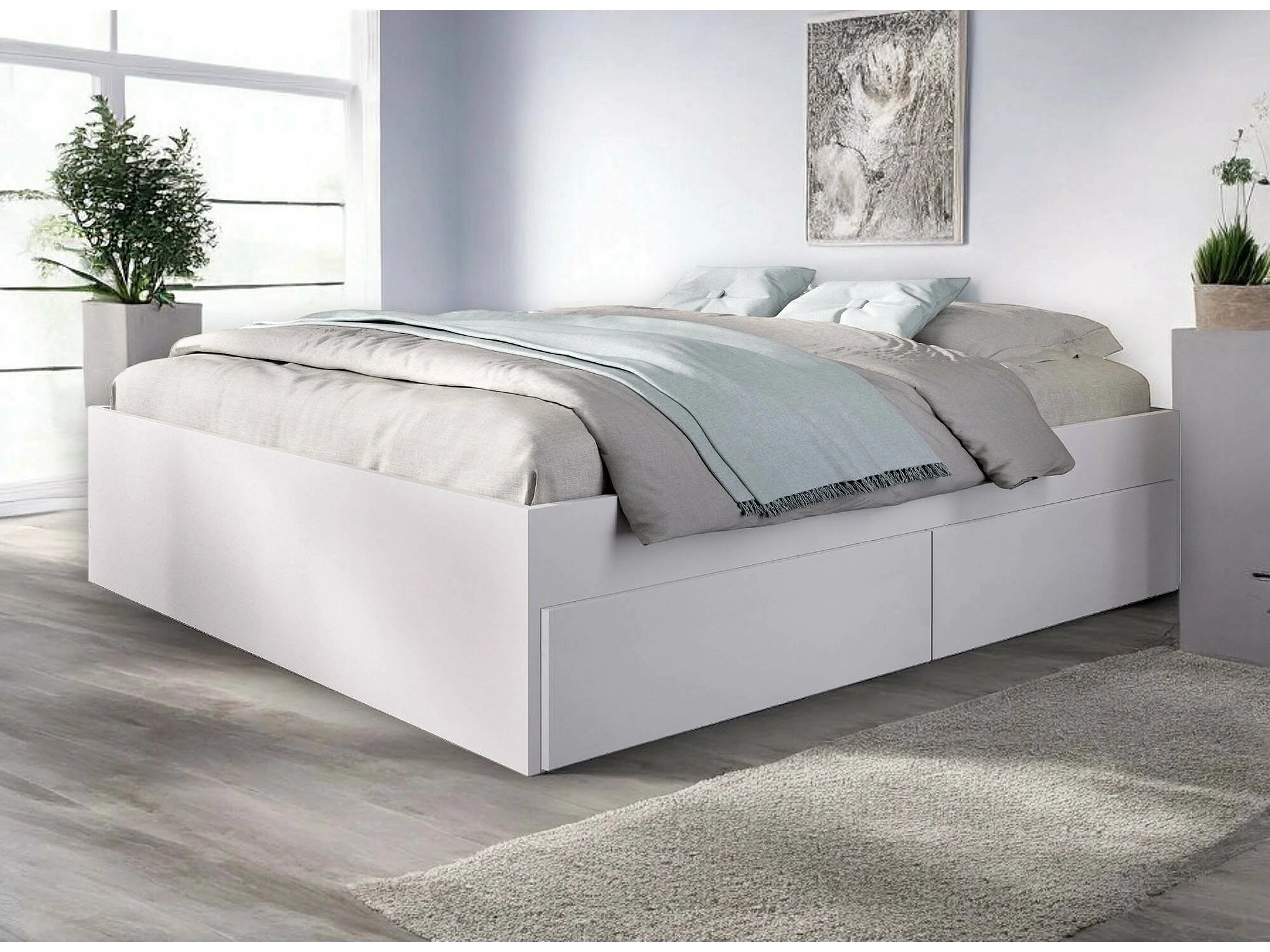 Lit double Dkir, Sommier pour chambre, Literie par chambre, Support de matelas, 169x205 h39 cm, Blanc