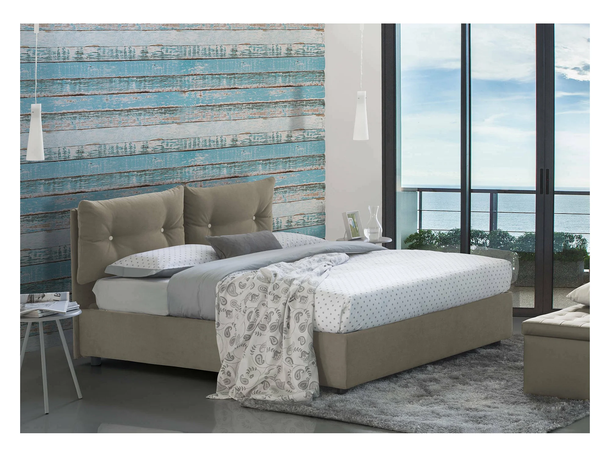 Lit double Dlucid, Lit coffre avec revêtement en tissu, 100% Made in Italy, Ouverture frontale, avec matelas 160x200 cm inclus, Taupe