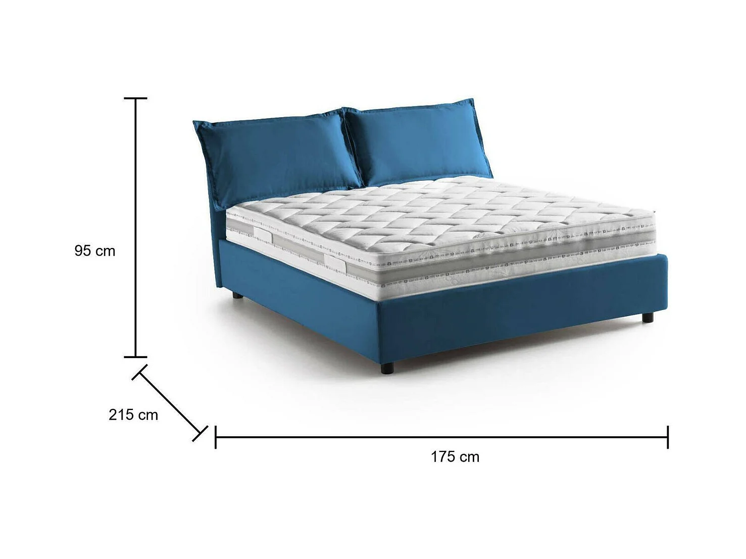 Lit double Dmarin, Lit coffre avec revêtement en tissu, 100% Made in Italy, Ouverture frontale, avec matelas 160x200 cm inclus, Bleu