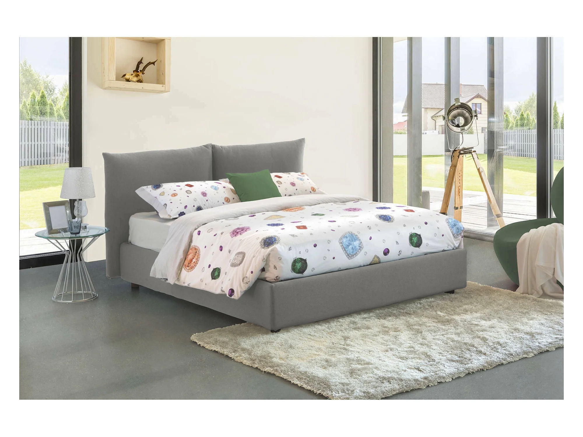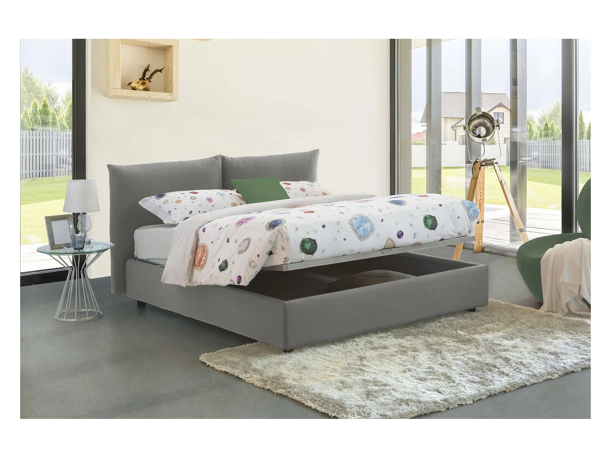 Lit double Dmlaka, Lit coffre avec revêtement en tissu, 100% Made in Italy, Ouverture frontale, adapté pour matelas 160x190 cm, Gris