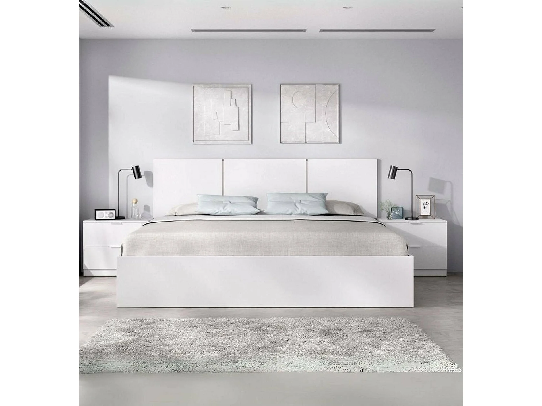 Lit double Dros, Sommier pour chambre, Literie par chambre, Support de matelas, 259x195 h96 cm, Blanc