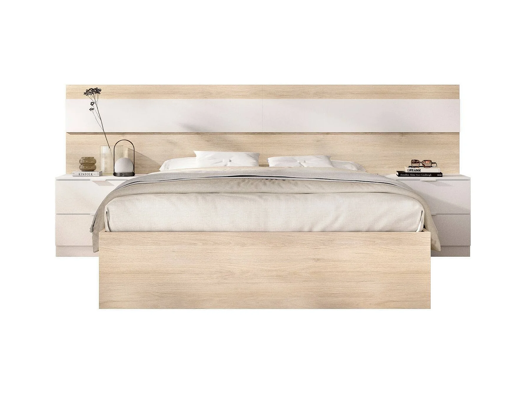 Lit double Dthompso, Sommier pour chambre, Literie par chambre, Support de matelas, 267x205 h96 cm, Chêne clair et Blanc