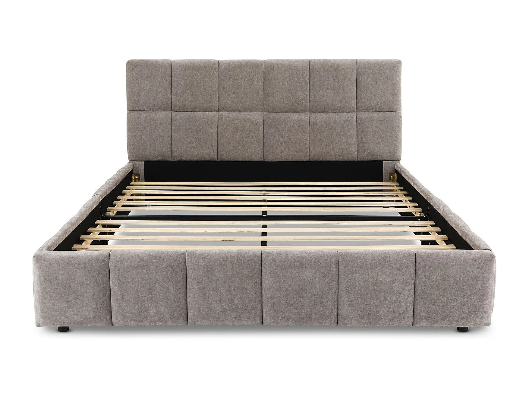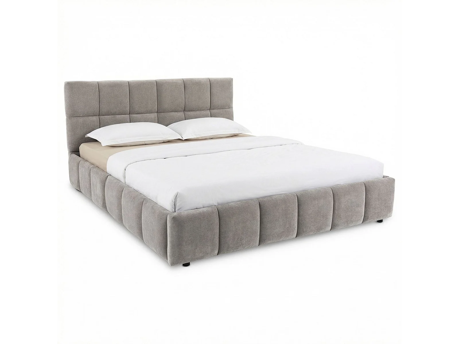 Lit Double EMILIA, Rembourré 160 x 200 cm Queen Size, Gris, avec Sommier à Lattes Inclus, Design Bubble, Tête de Lit Capitonnée