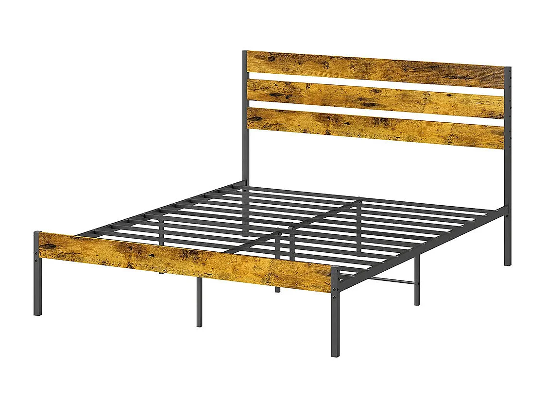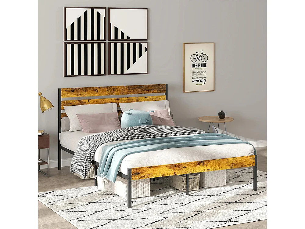 Lit double en acier 160 x 200 cm, avec sommier et tête de lit, style industriel