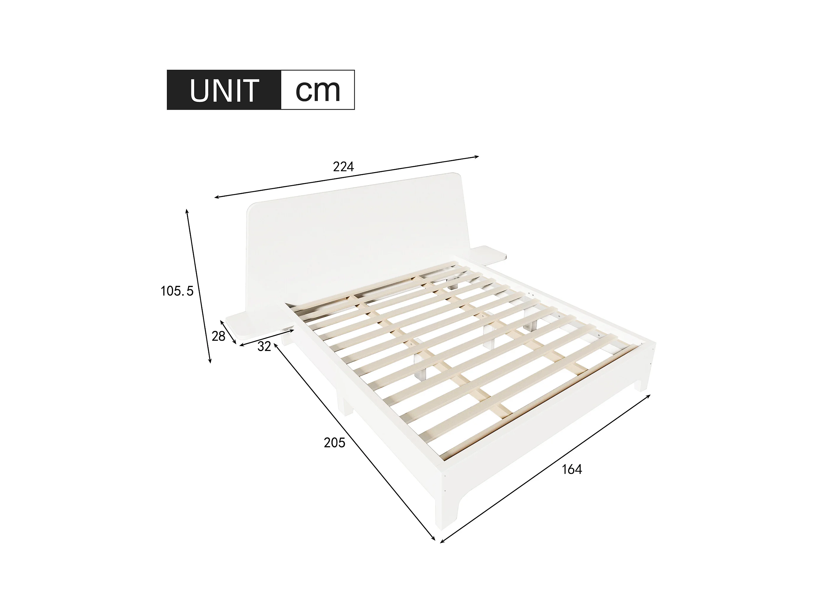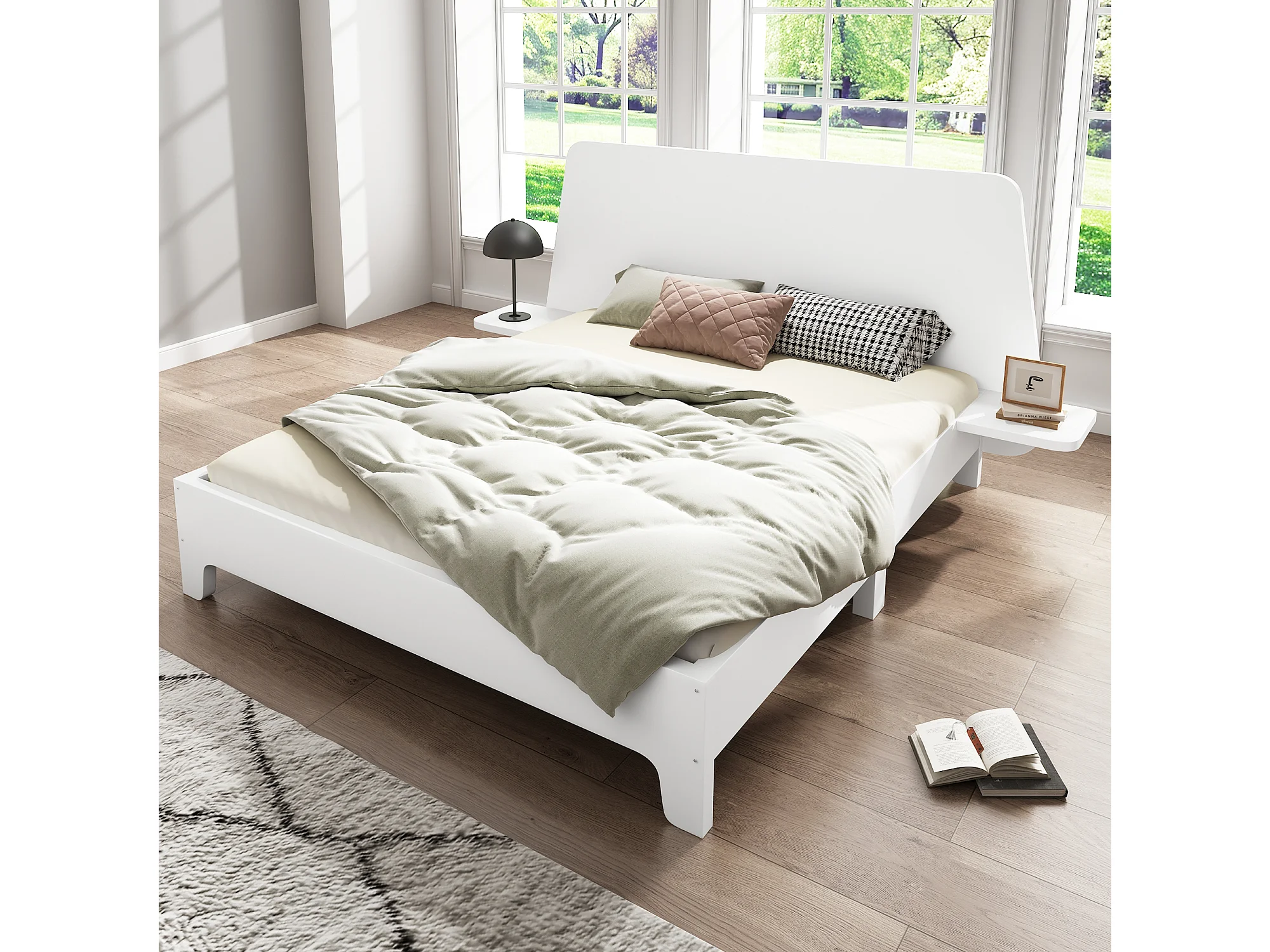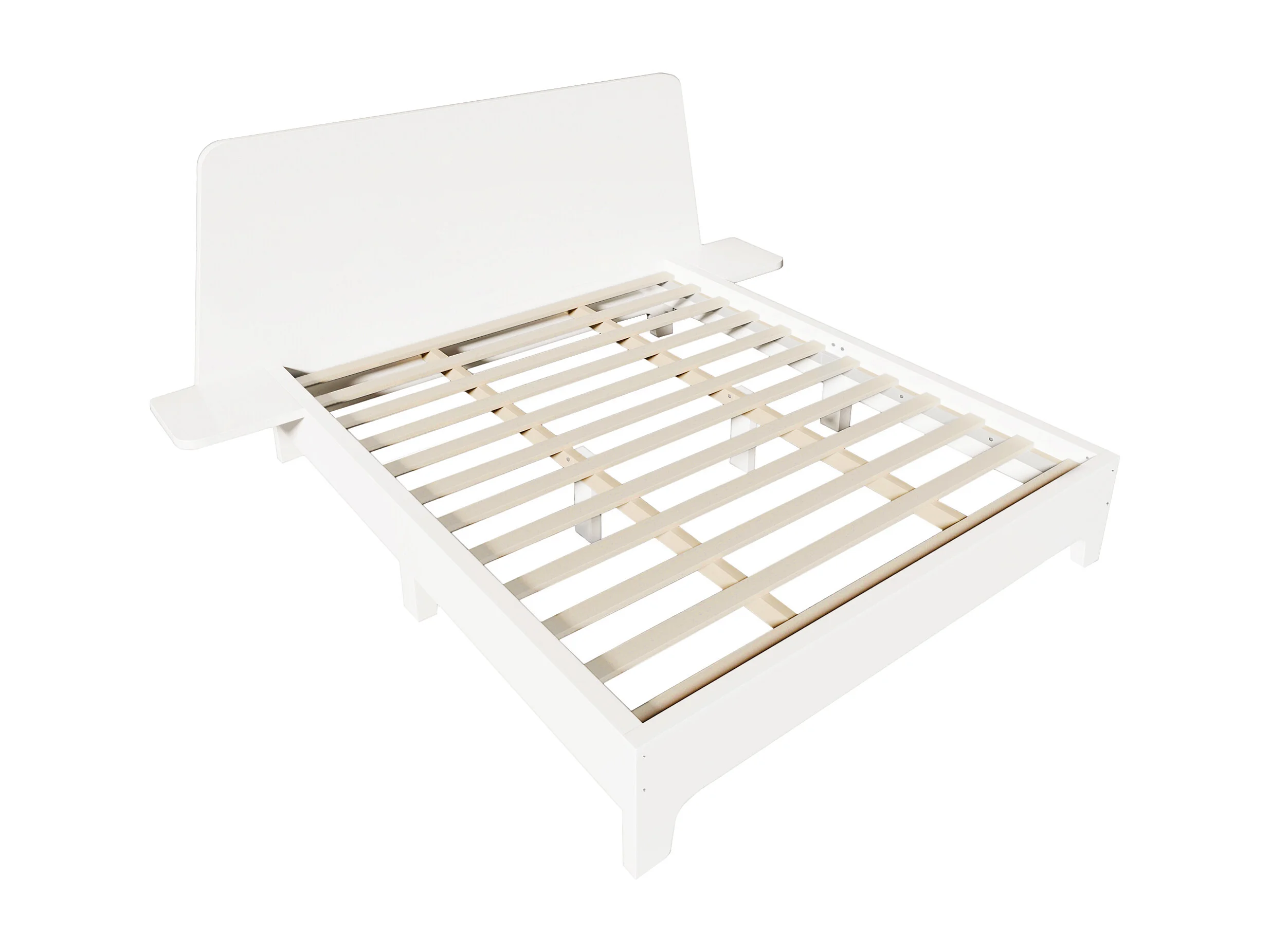 Lit adulte en bois 160x200 cm - Tête de lit avec tablettes latérales - Blanc (sans matelas)