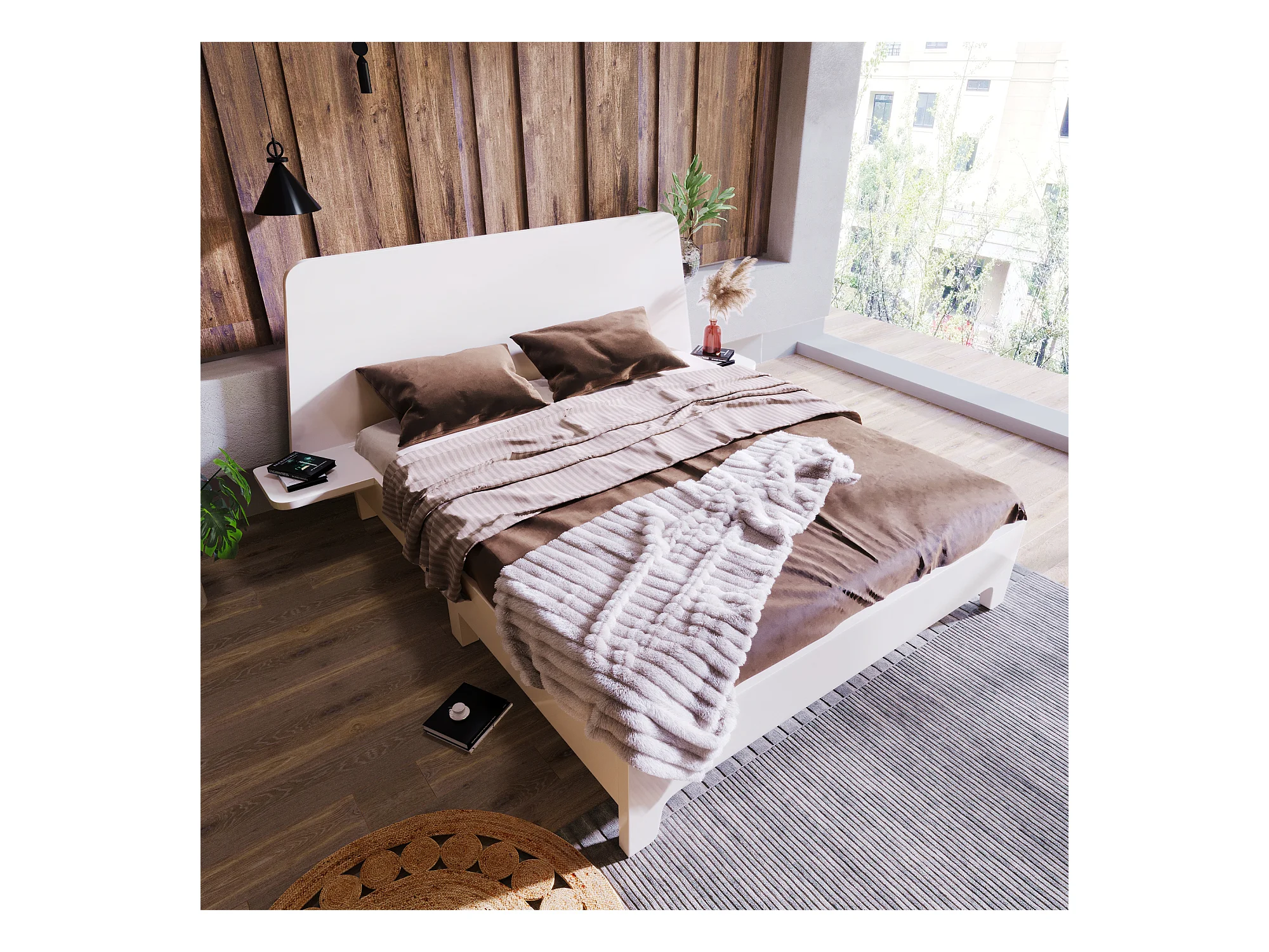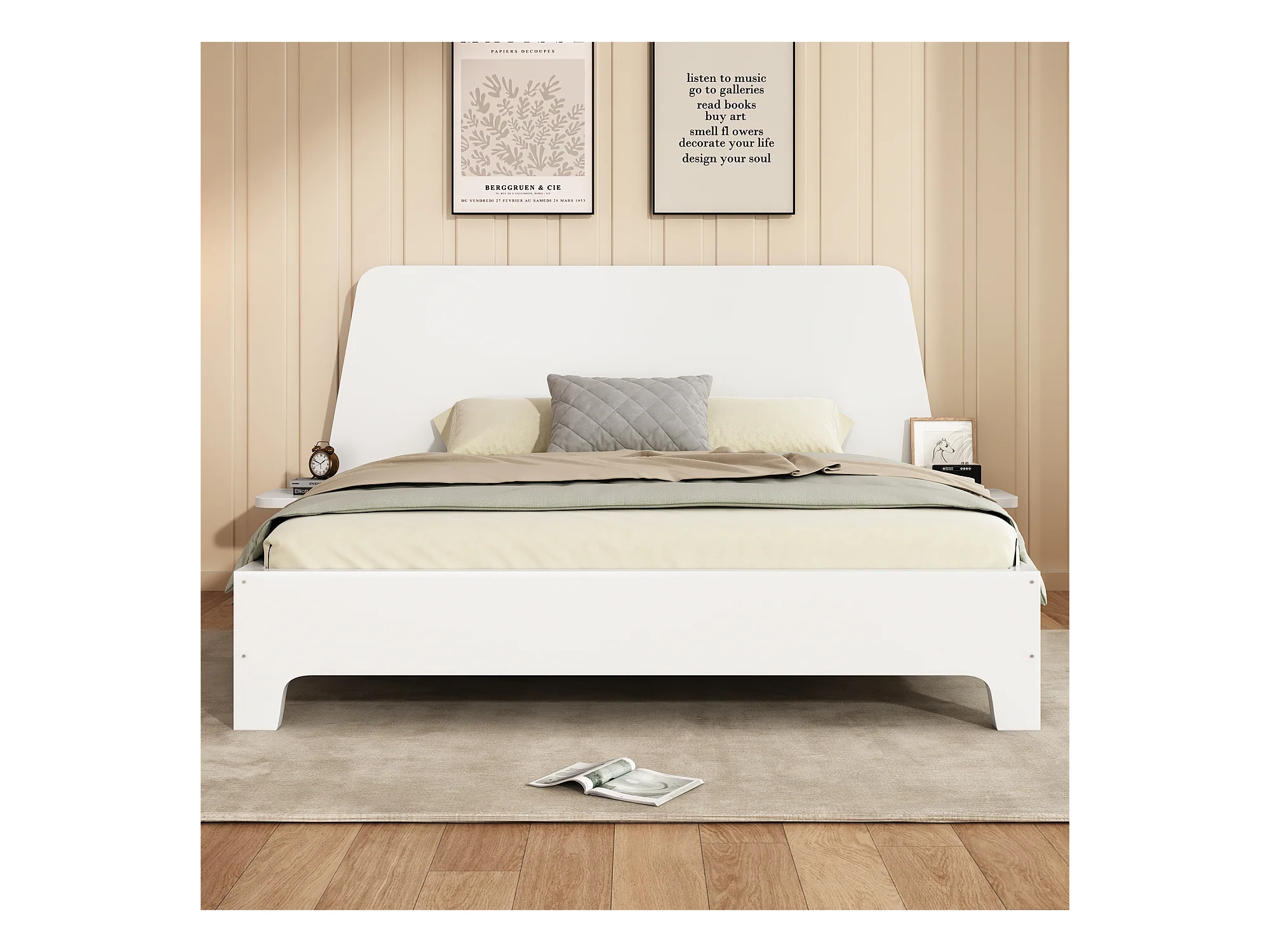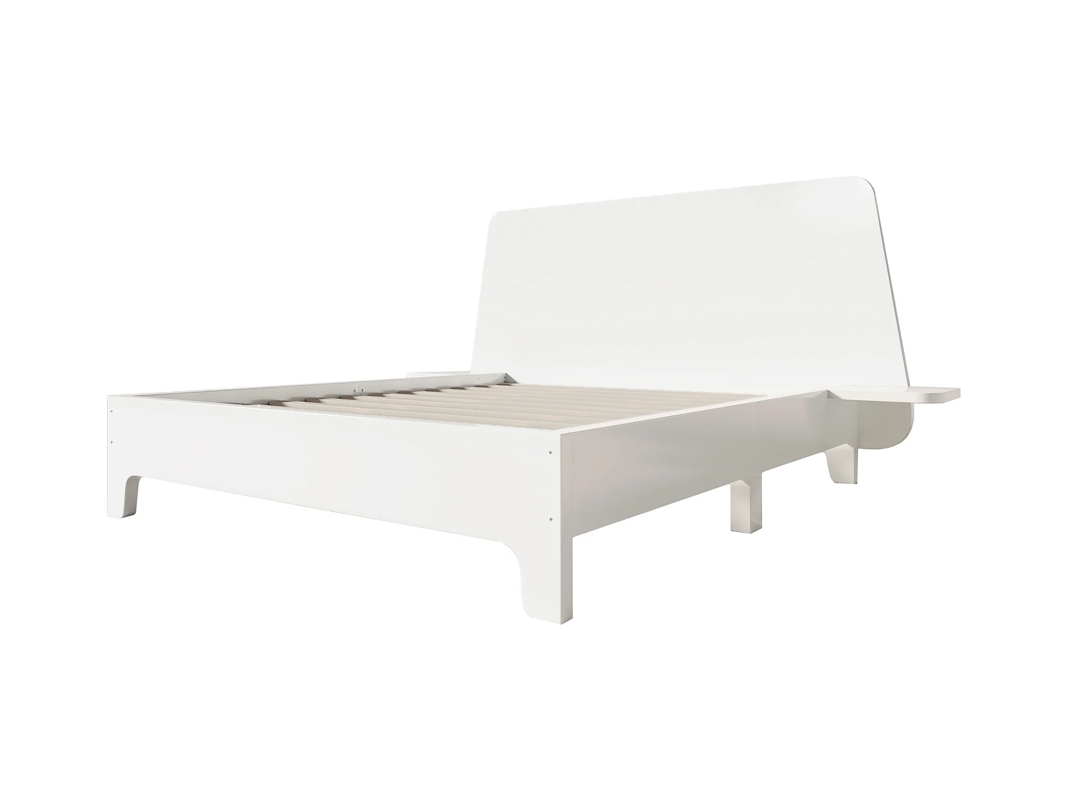 Lit adulte en bois 160x200 cm - Tête de lit avec tablettes latérales - Blanc (sans matelas)