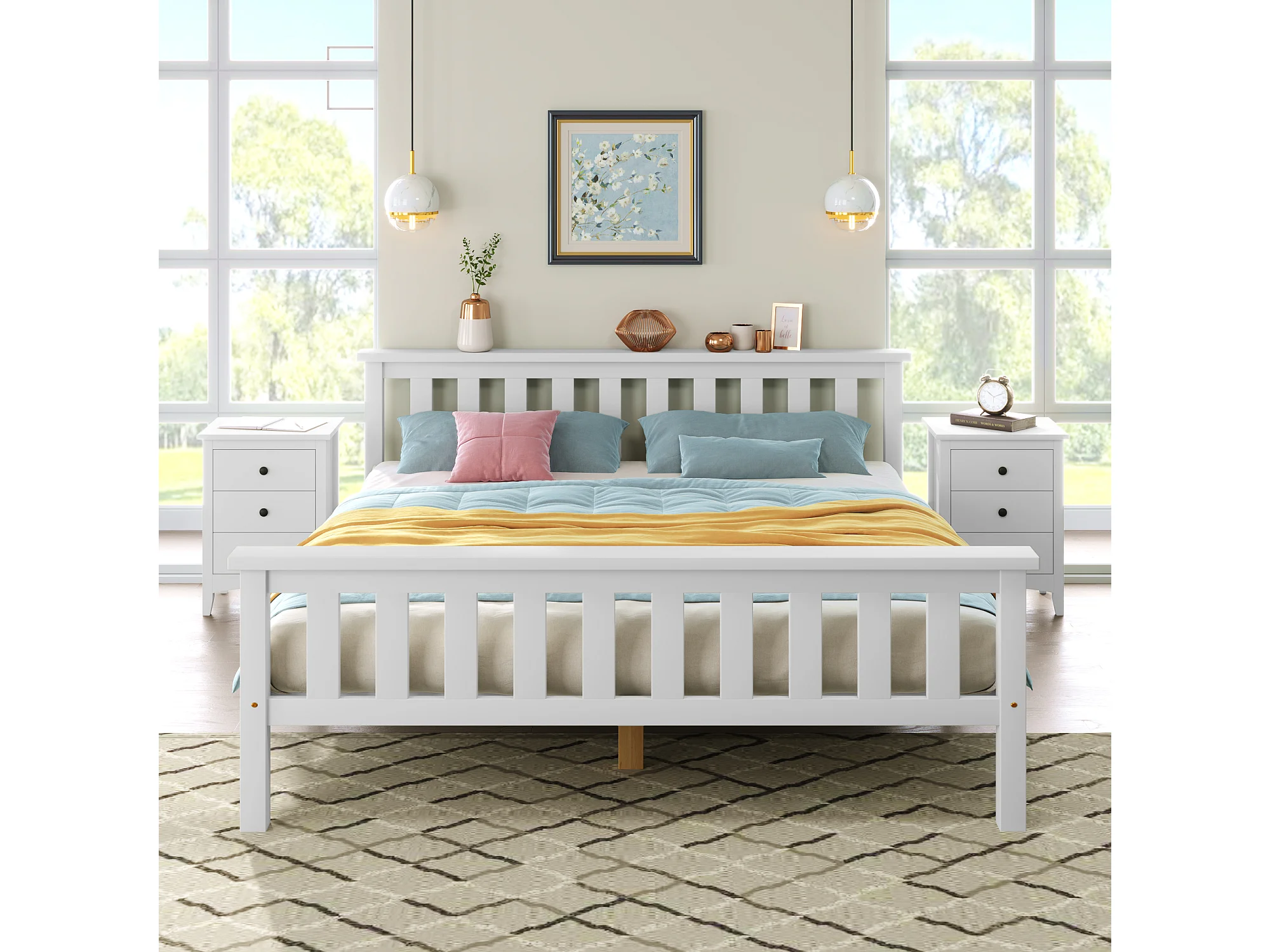 Lit double en bois massif 140×200 cm avec sommier, pin blanc, style épuré pour adultes et adolescents