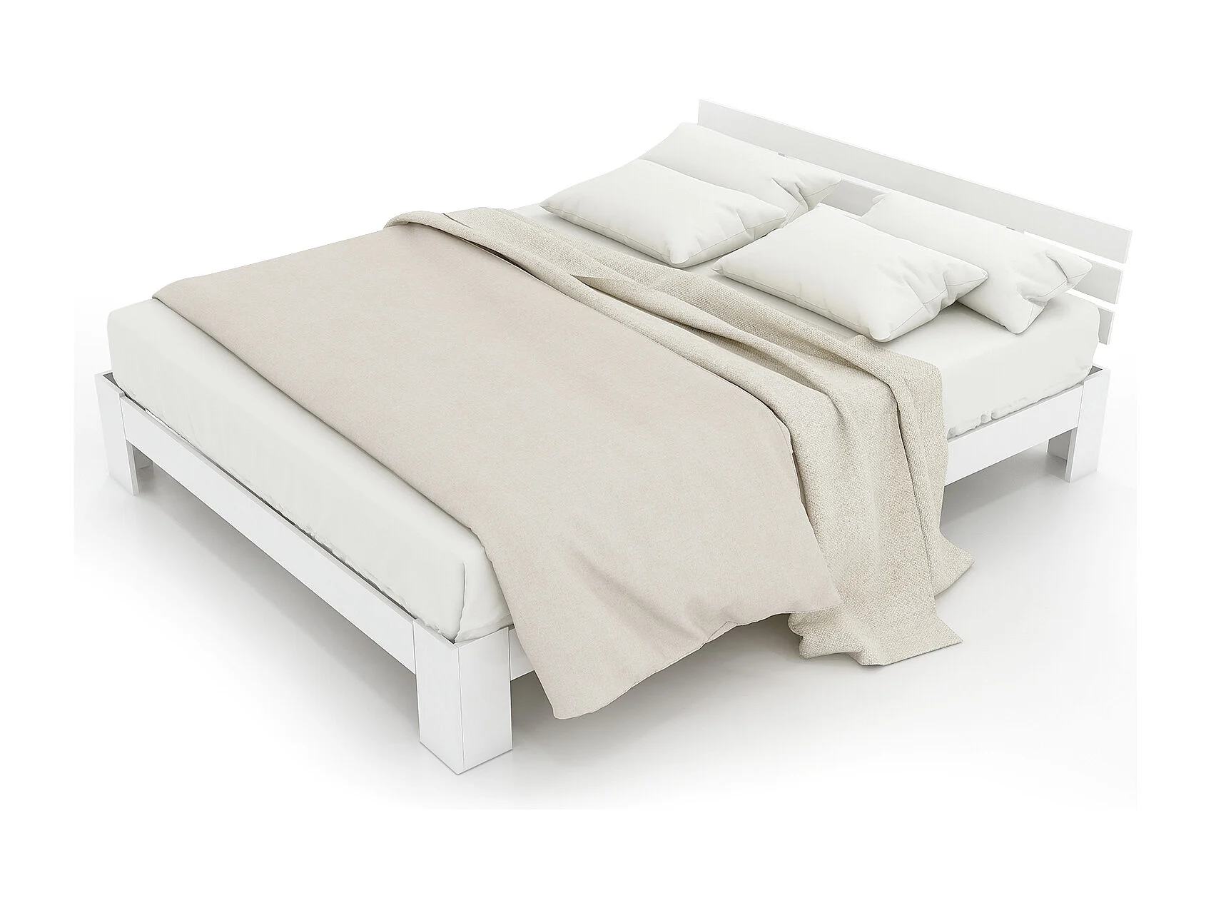 Lit double en bois massif 140×200 cm avec tête de lit et sommier, cadre en pin naturel, solide et durable
