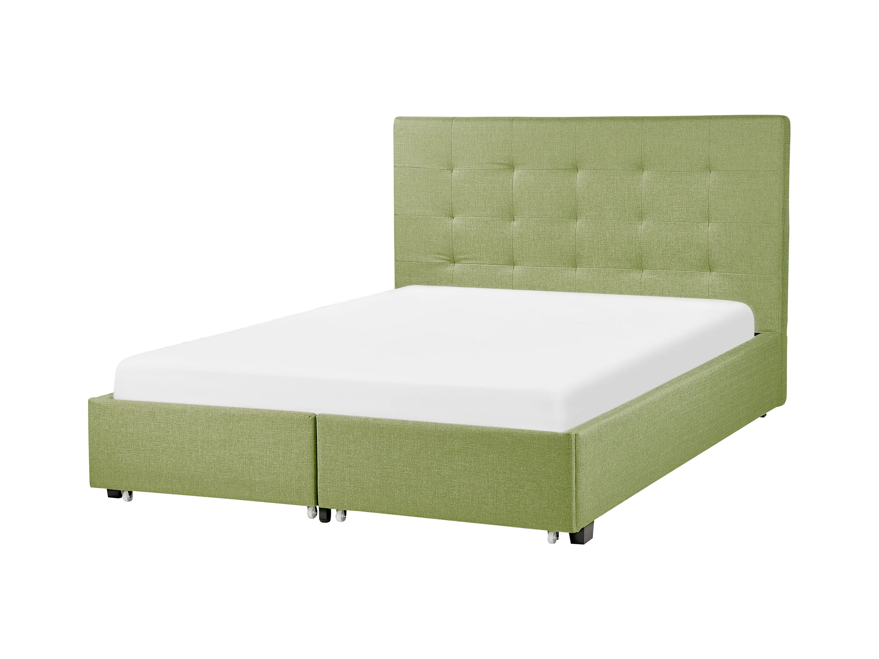 Lit avec tiroirs de rangement Tissu LA ROCHELLE 140 x 200 cm Vert