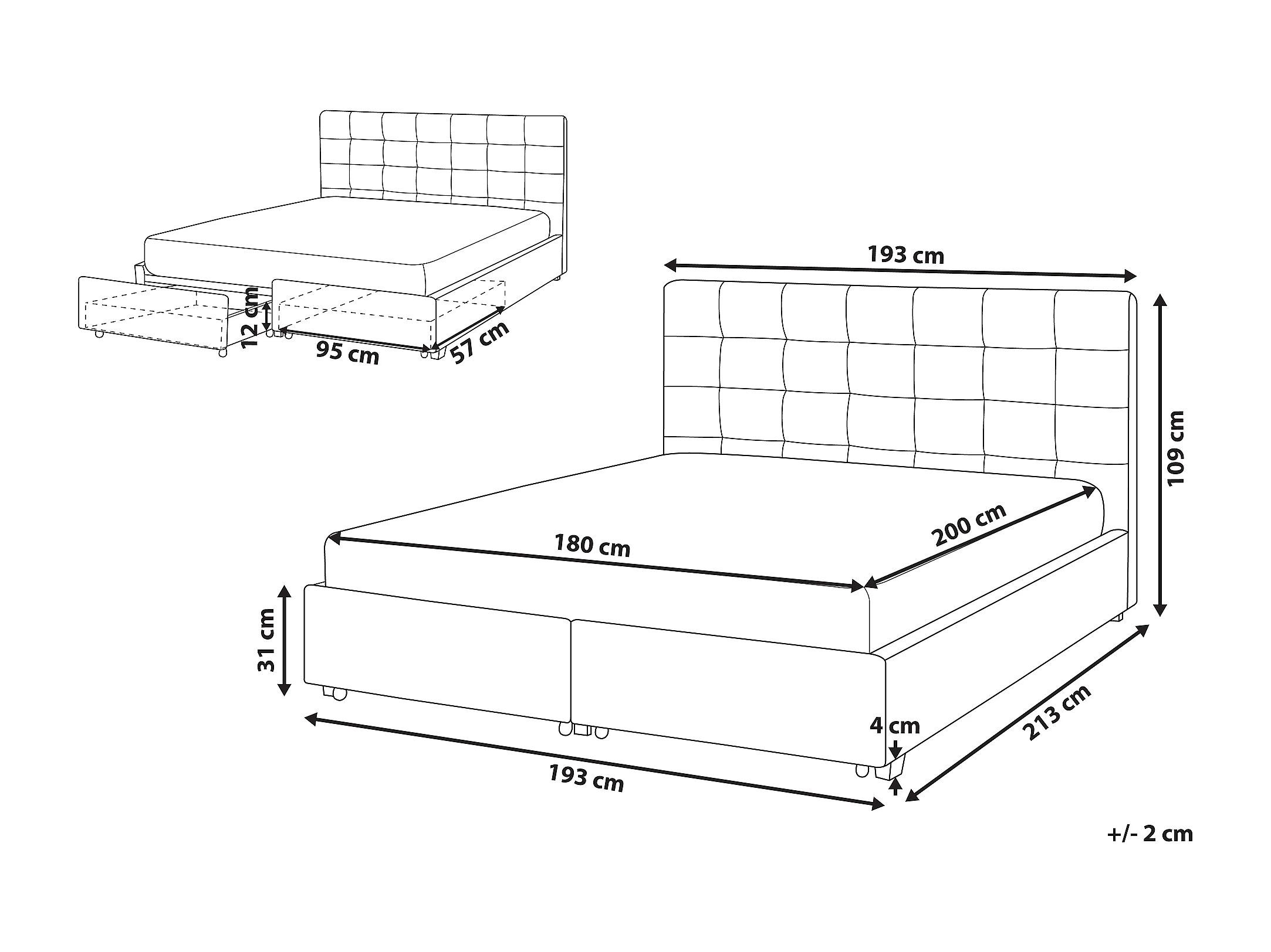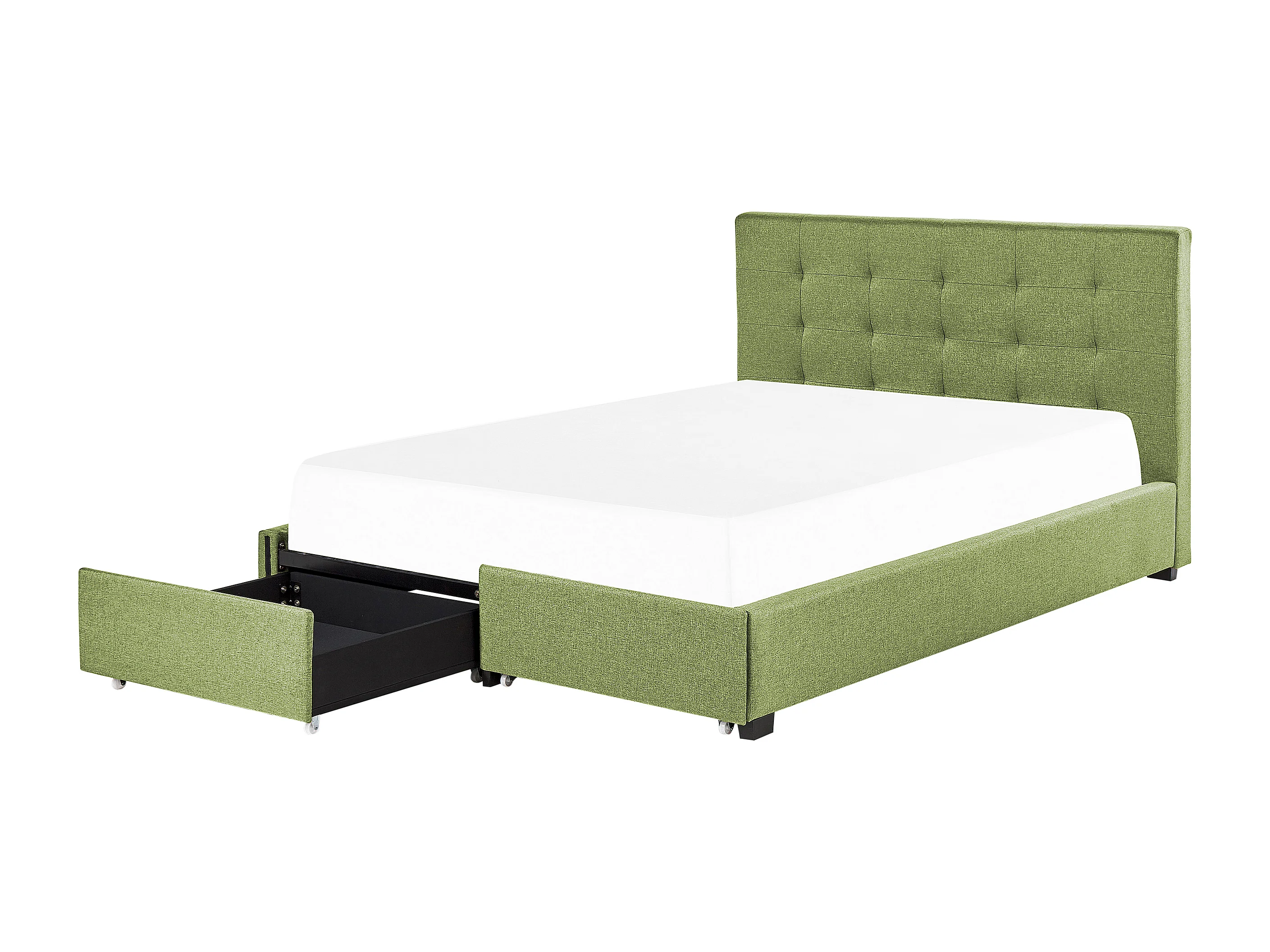 Lit avec tiroirs de rangement Tissu LA ROCHELLE 180 x 200 cm Vert