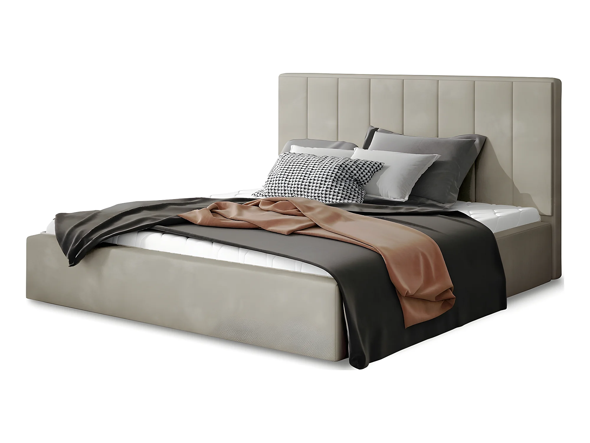 Lit double en tissu de qualité luxe, AUDE, beige, 160x200