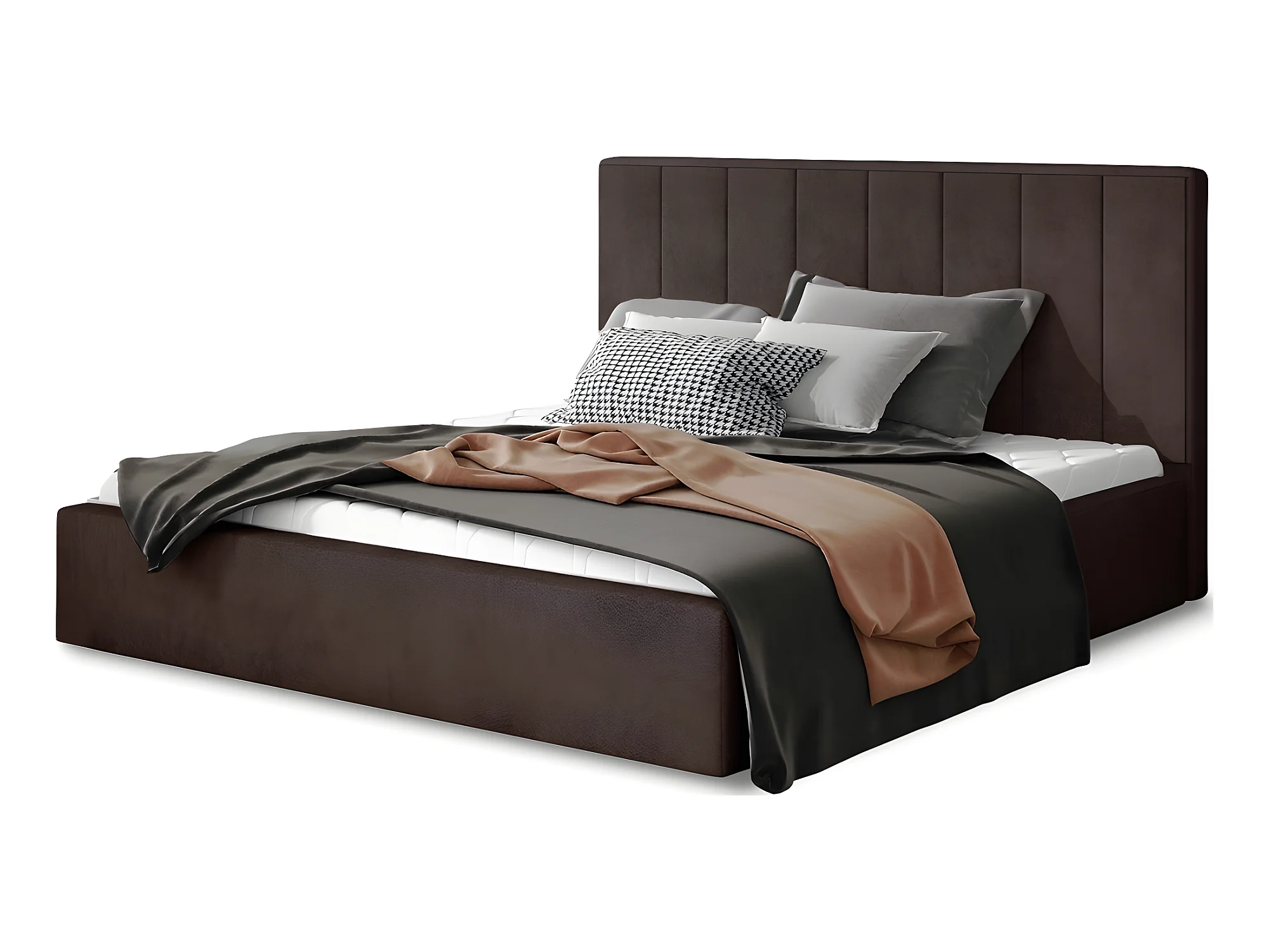 Lit double en tissu de qualité luxe, AUDE, chocolat, 160x200