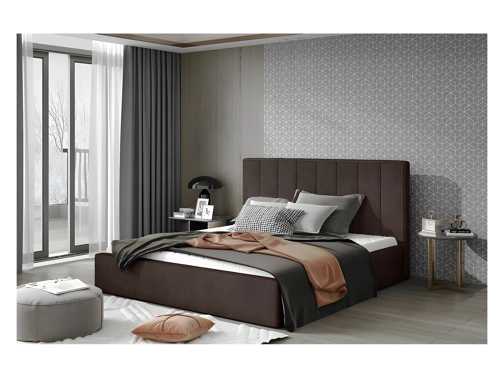 Lit double en tissu de qualité luxe, AUDE, chocolat, 180x200
