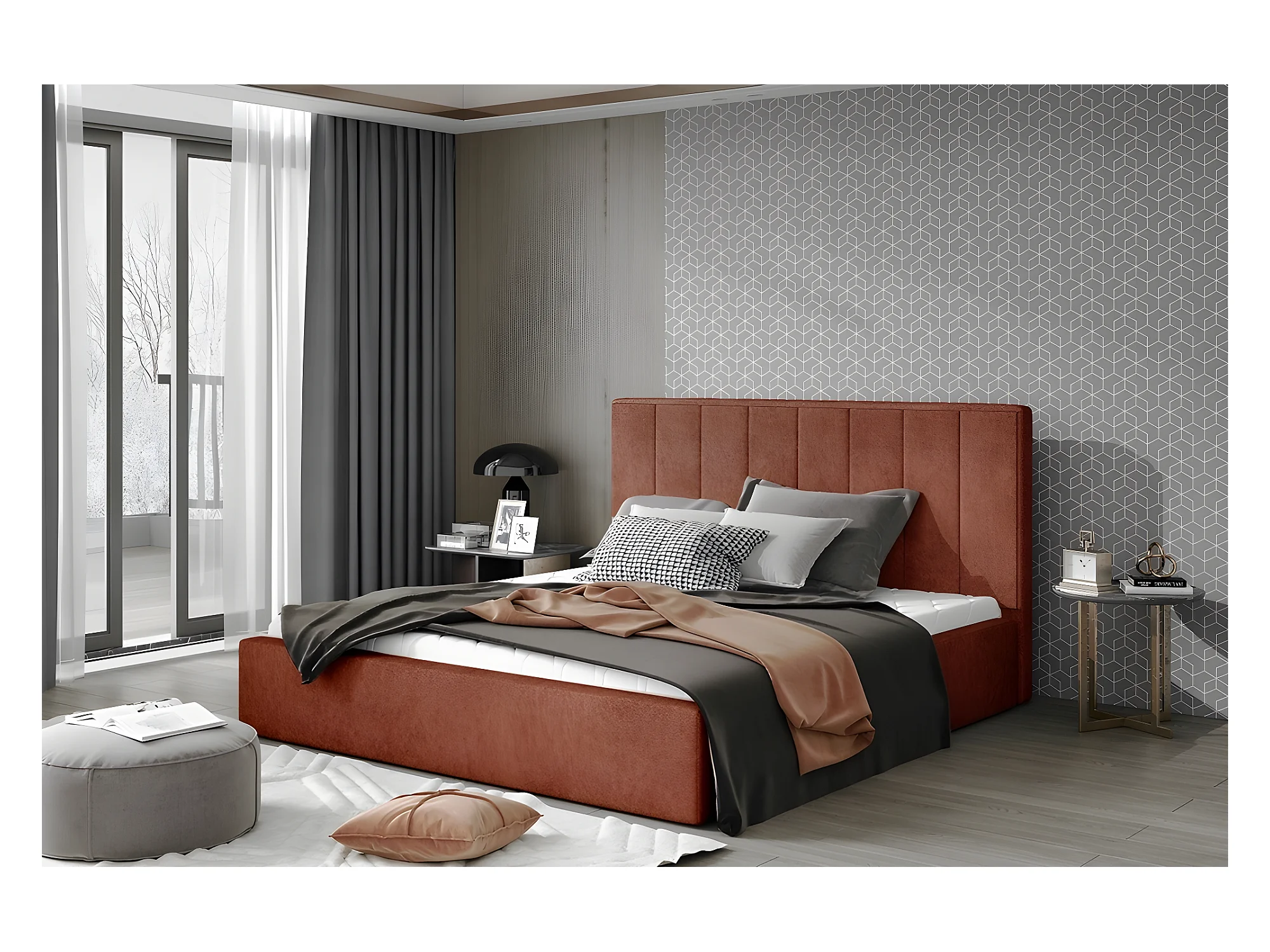 Lit double en tissu de qualité luxe, AUDE, marron, 140x200