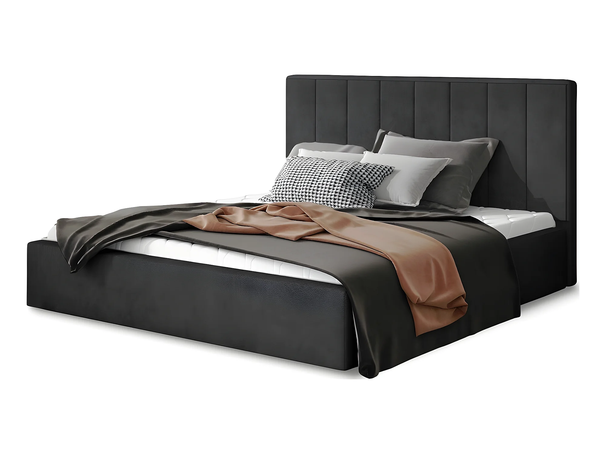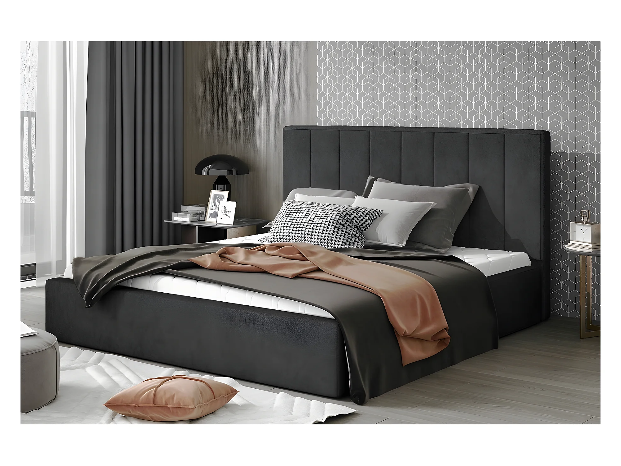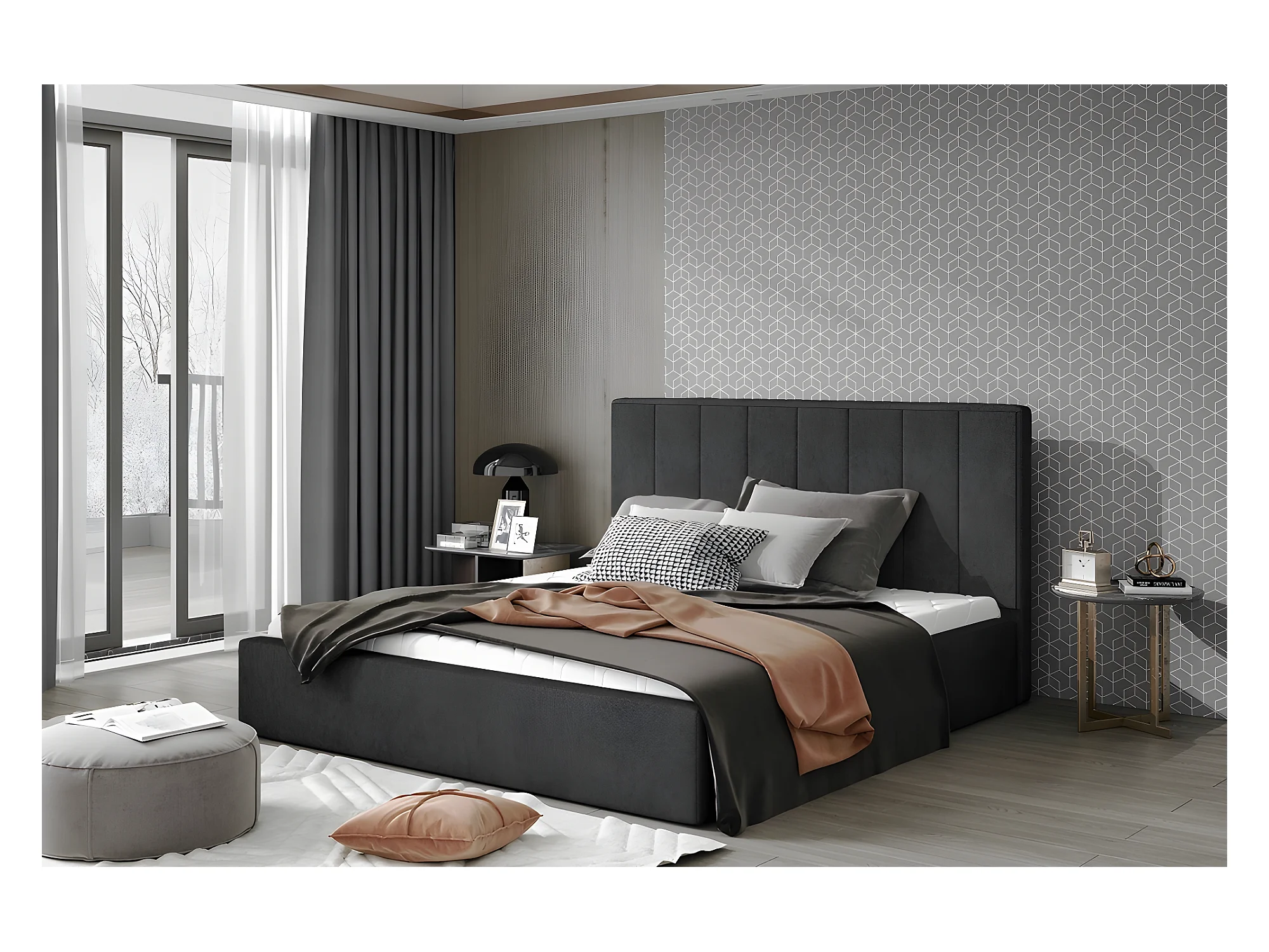 Lit double en tissu velours de qualité luxe, AUDE, anthracite, 160x200