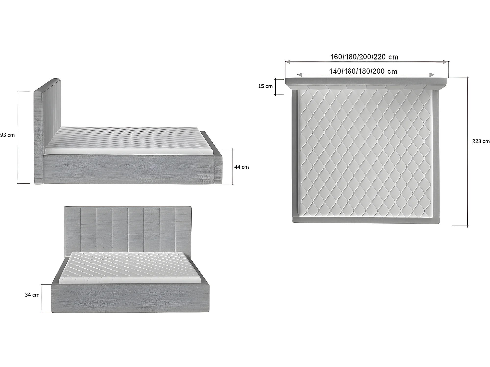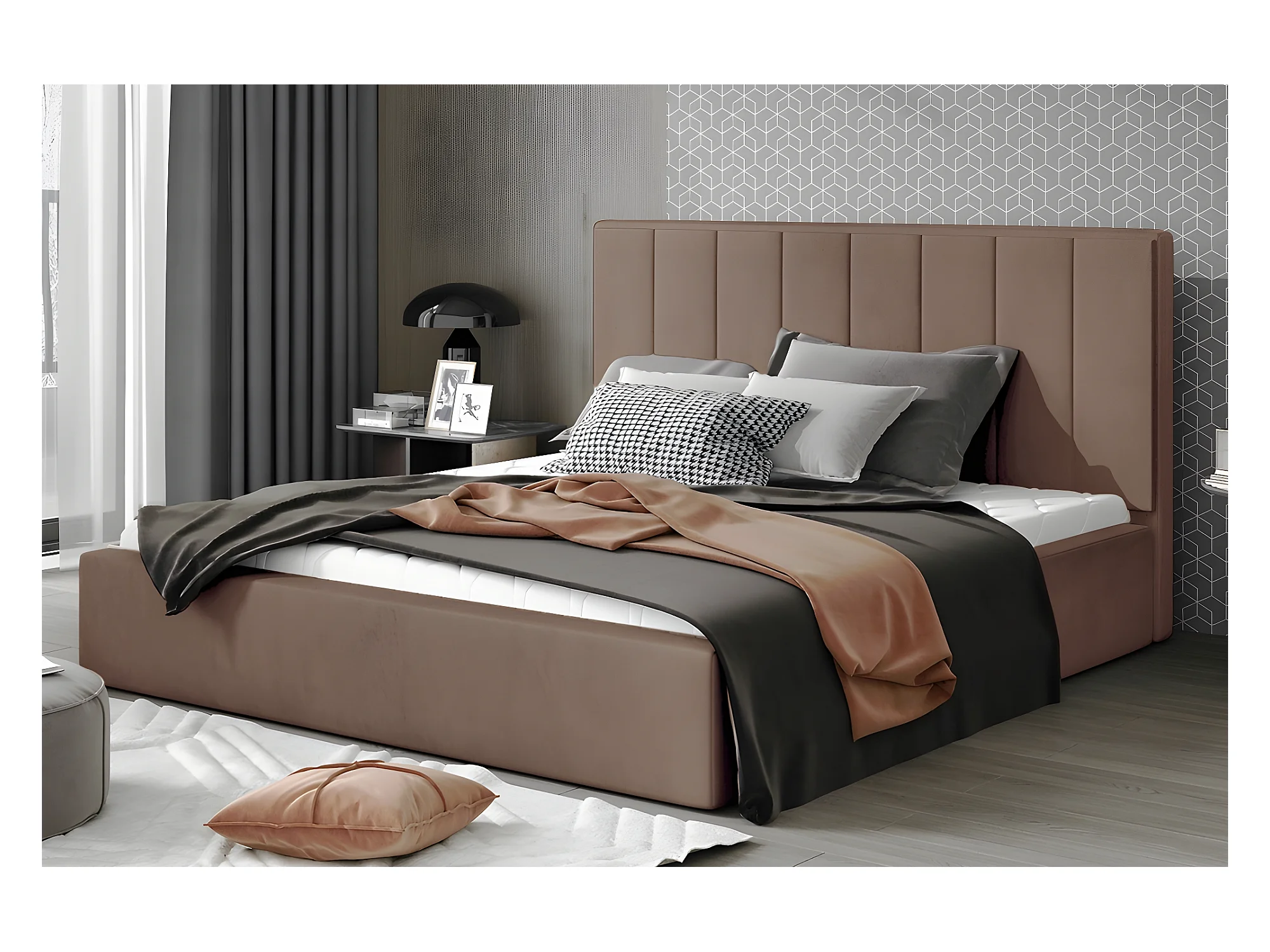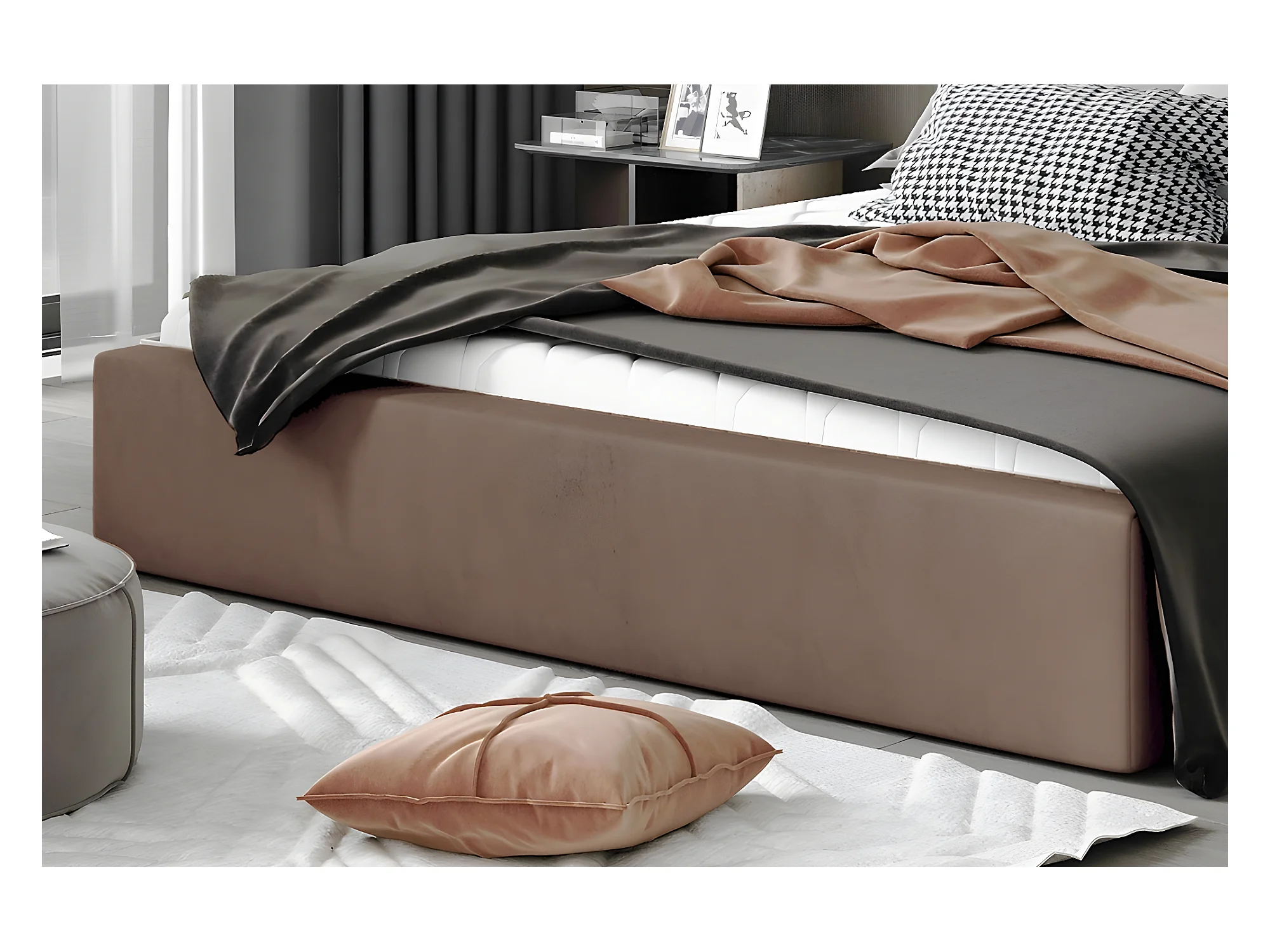 Lit double en tissu velours de qualité luxe, AUDE, marron, 160x200