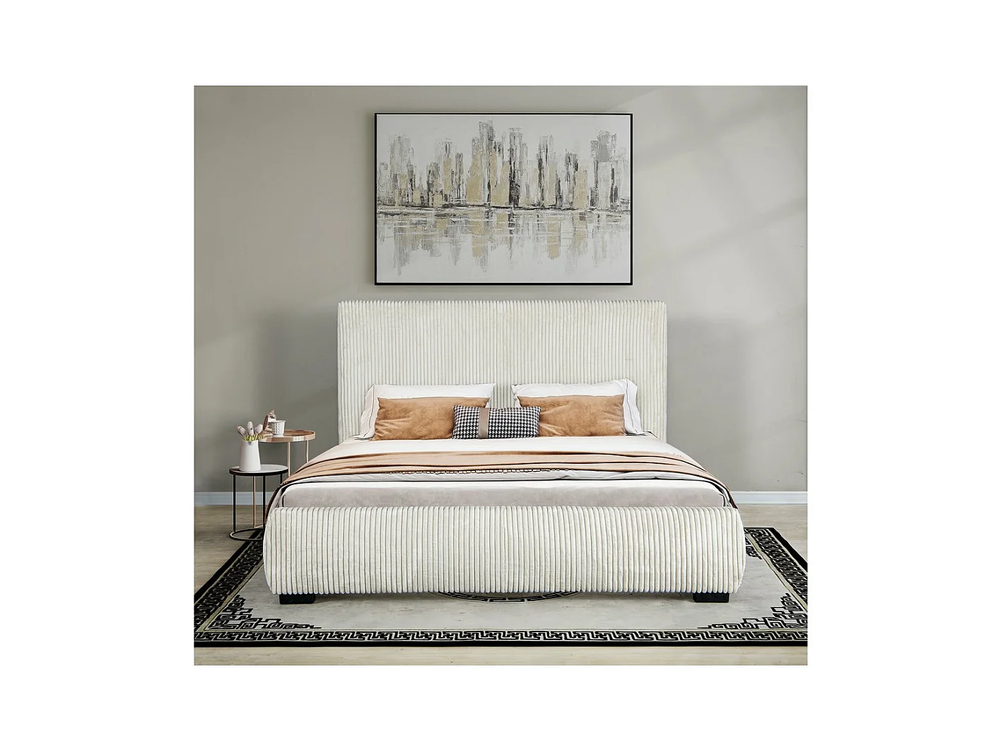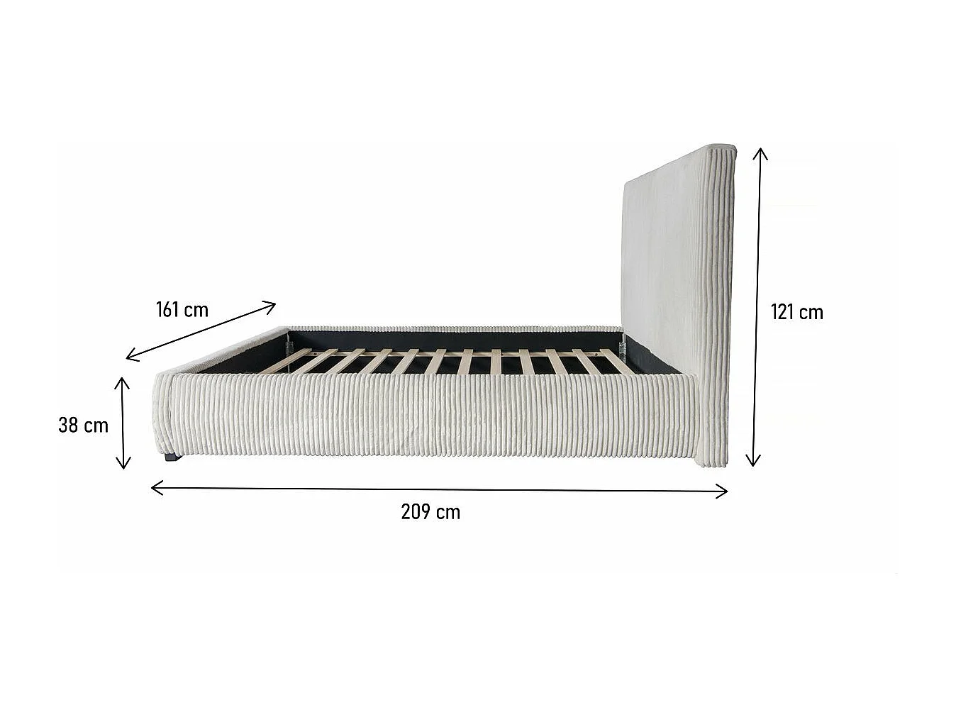 Lit double en velours côtelé "Montana" - 140 x 190 cm - Beige
