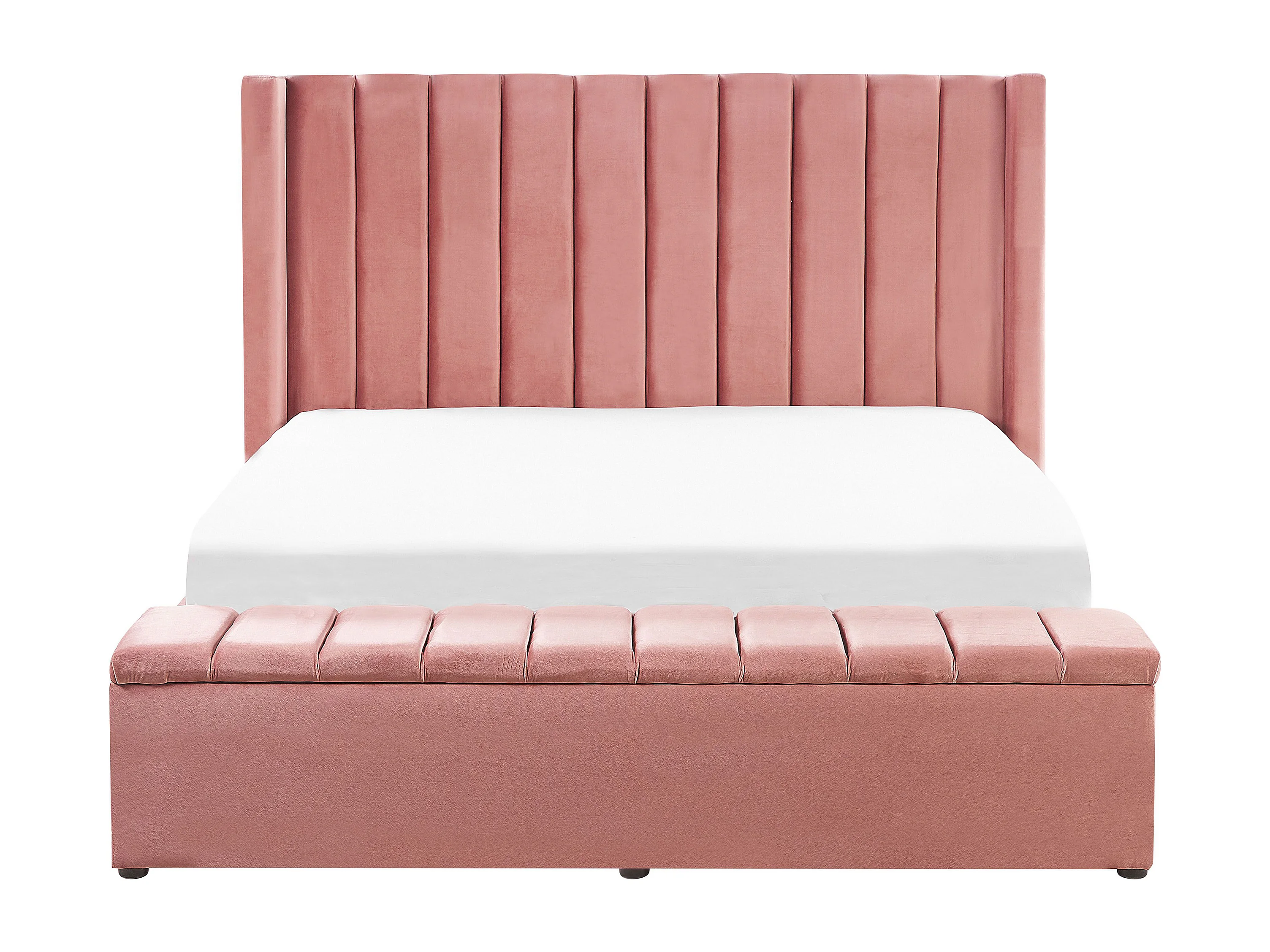 Lit avec banc de rangement Velours NOYERS 180 x 200 cm Rose