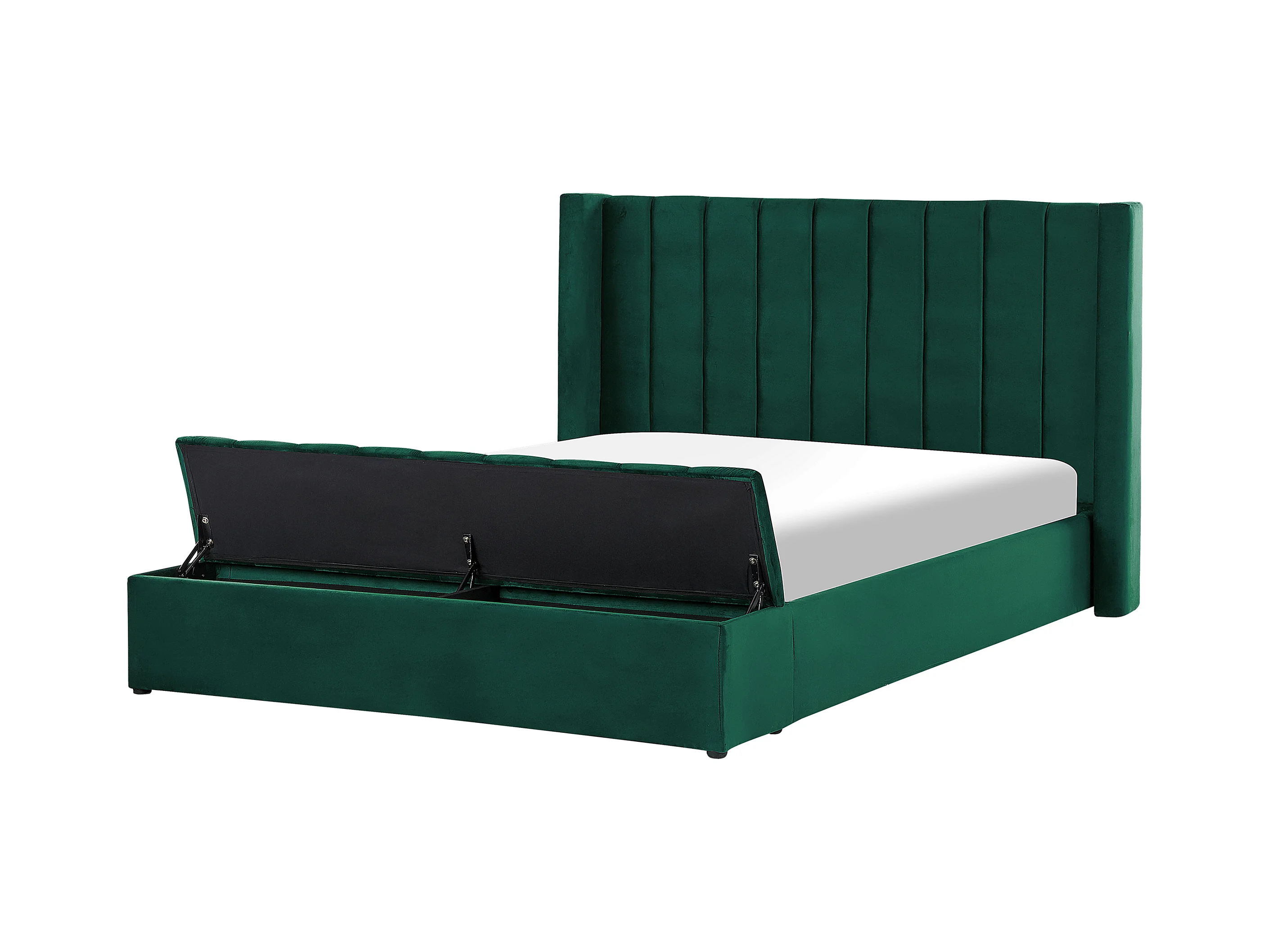 Lit avec banc de rangement Velours NOYERS 180 x 200 cm Vert émeraude