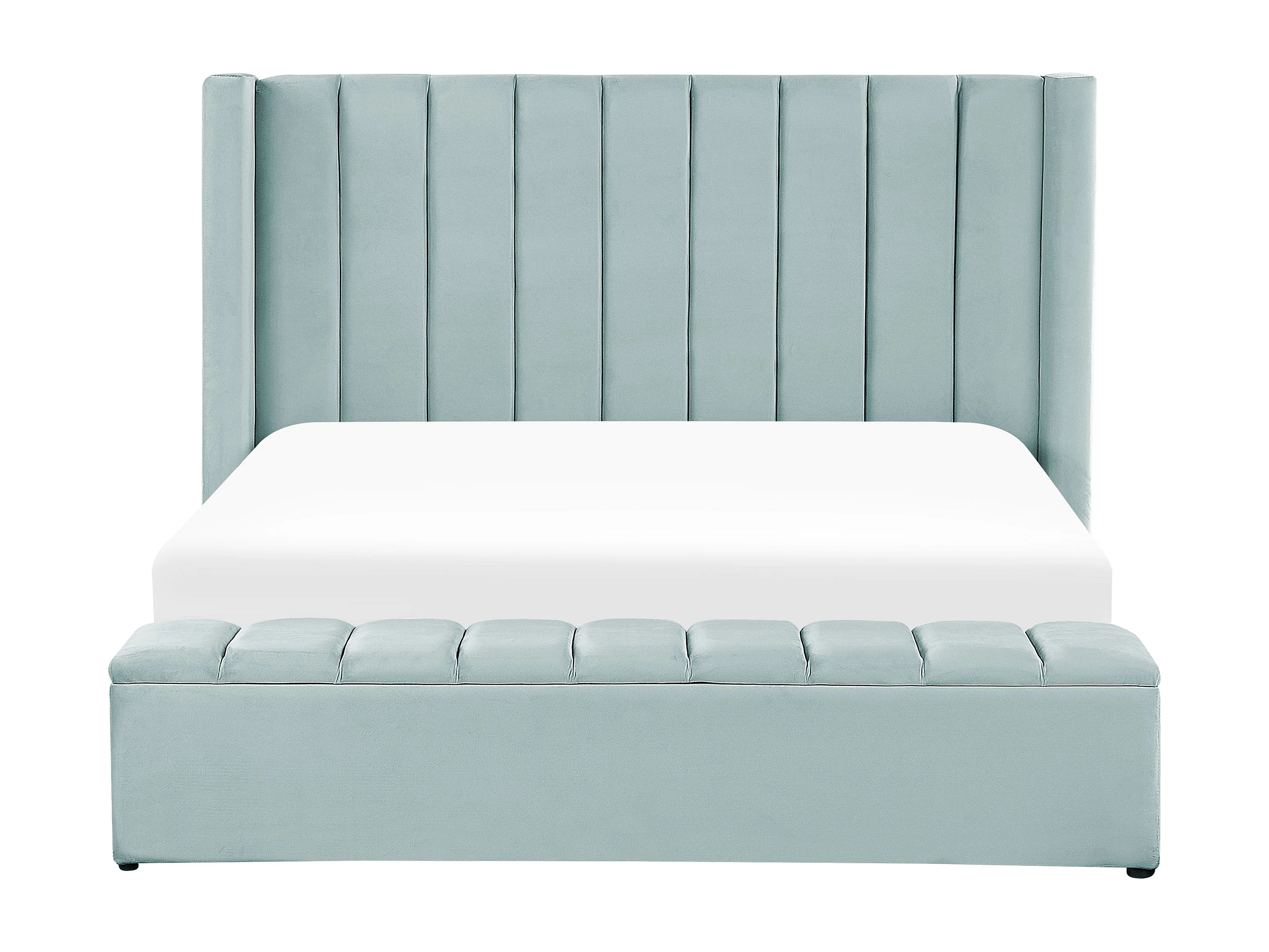 Lit double en velours vert menthe avec banc coffre 180 x 200 cm NOYERS