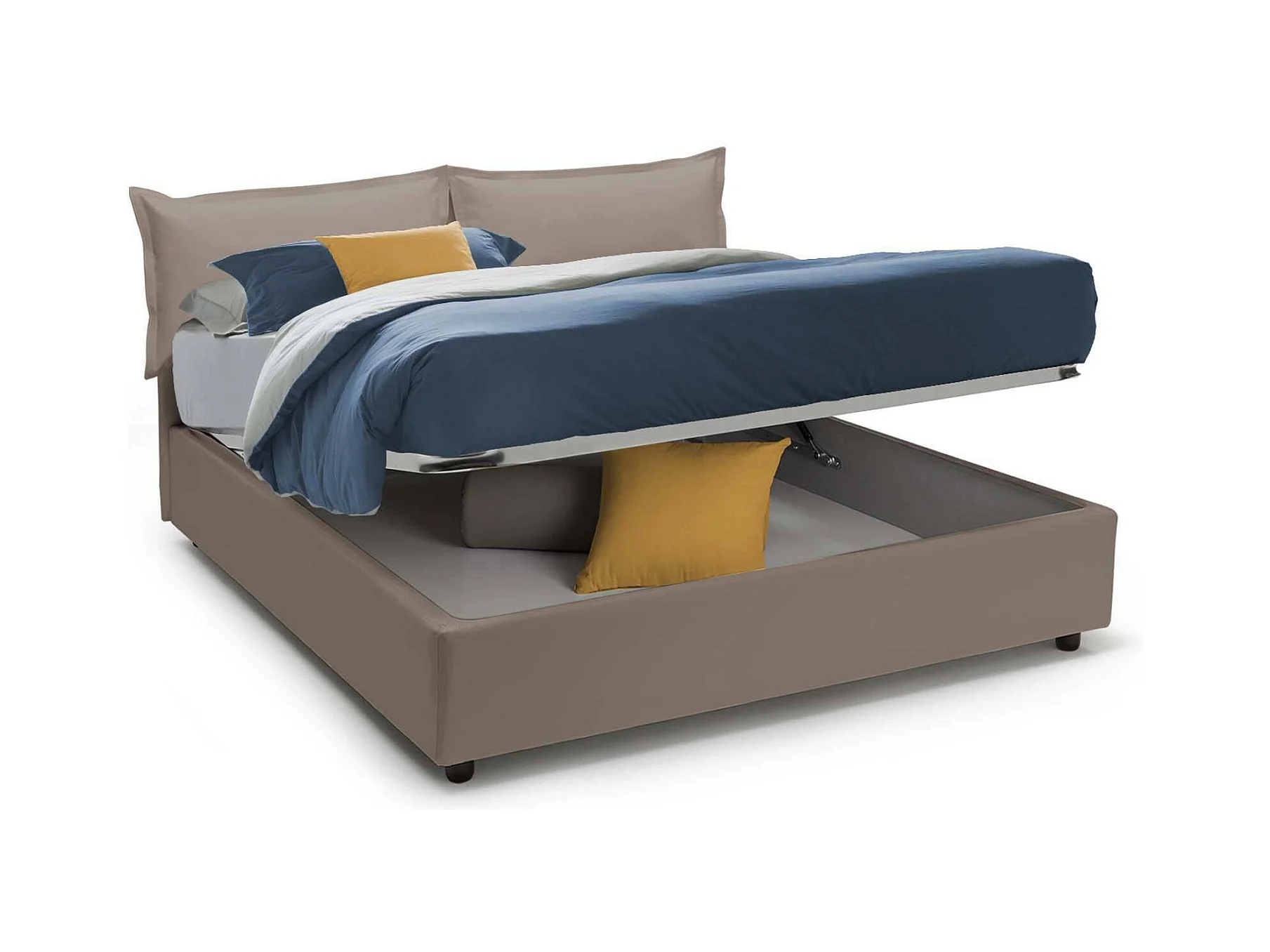Lit double Fatima, Lit coffre avec revêtement en éco-cuir, 100% Made in Italy, Ouverture frontale, avec matelas 140x200 cm inclus, Taupe
