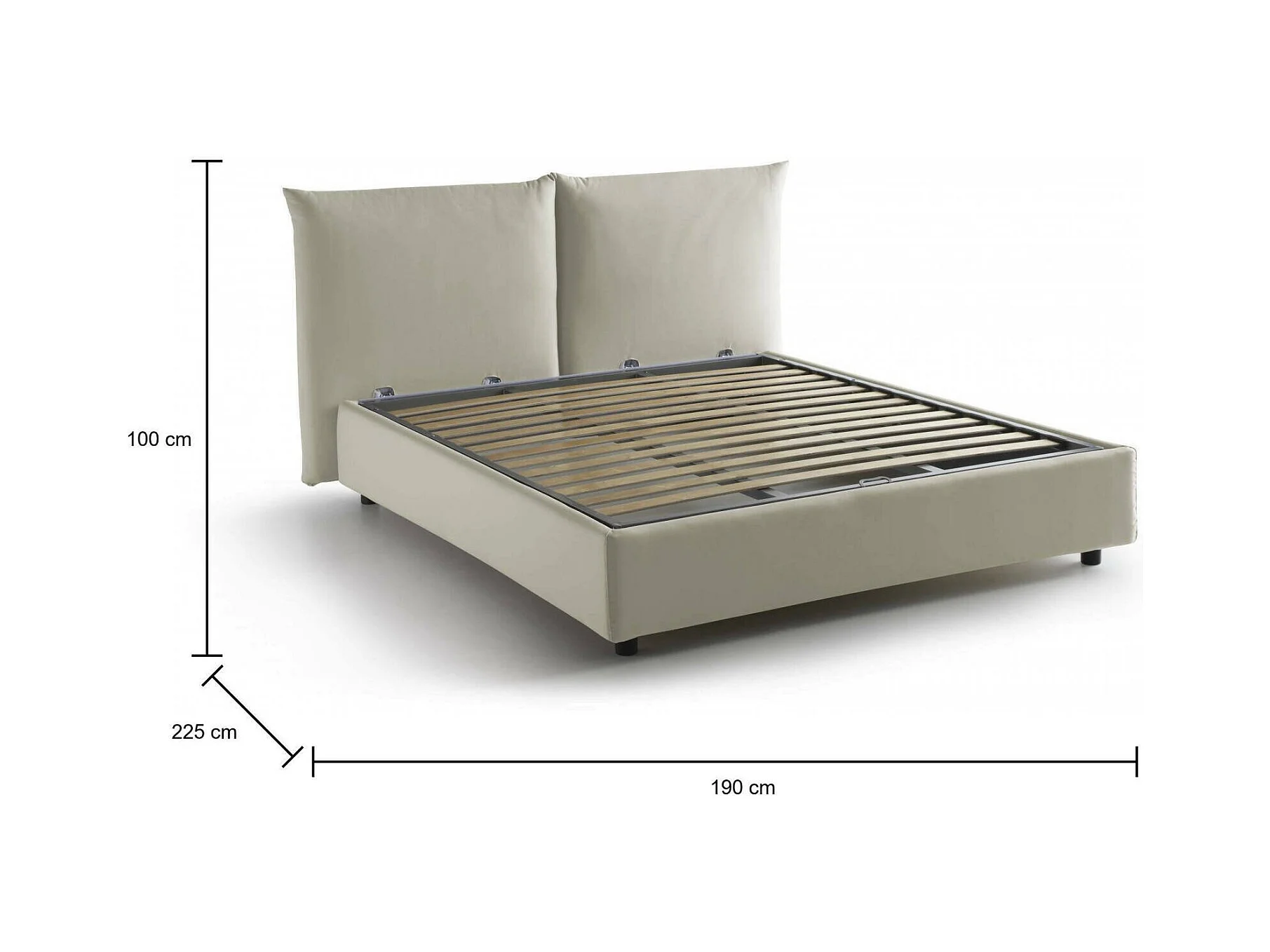 Lit double Gabriella, Lit coffre avec revêtement en tissu, 100% Made in Italy, Ouverture frontale, adapté pour matelas 160x200 cm, Beige