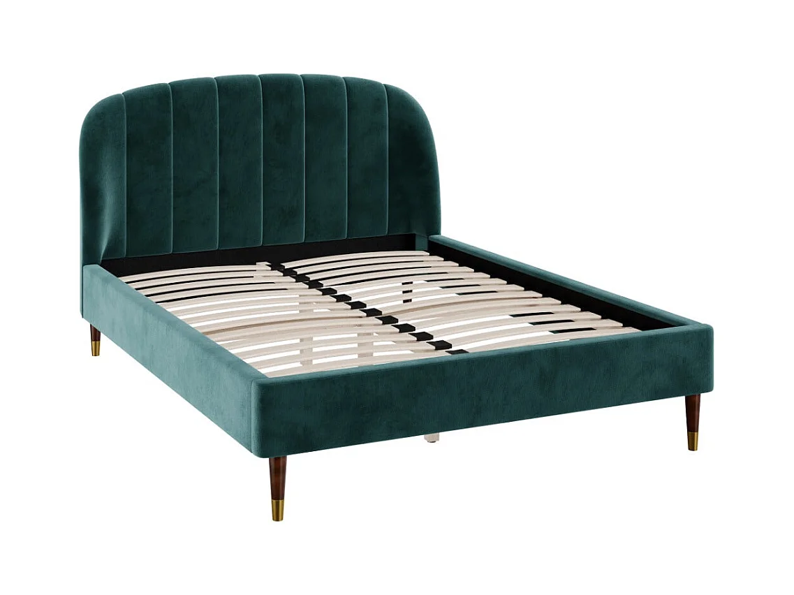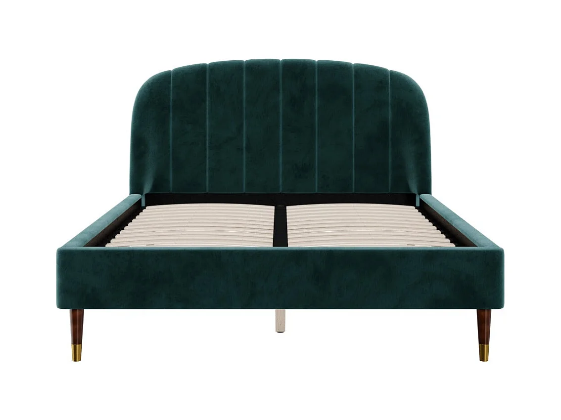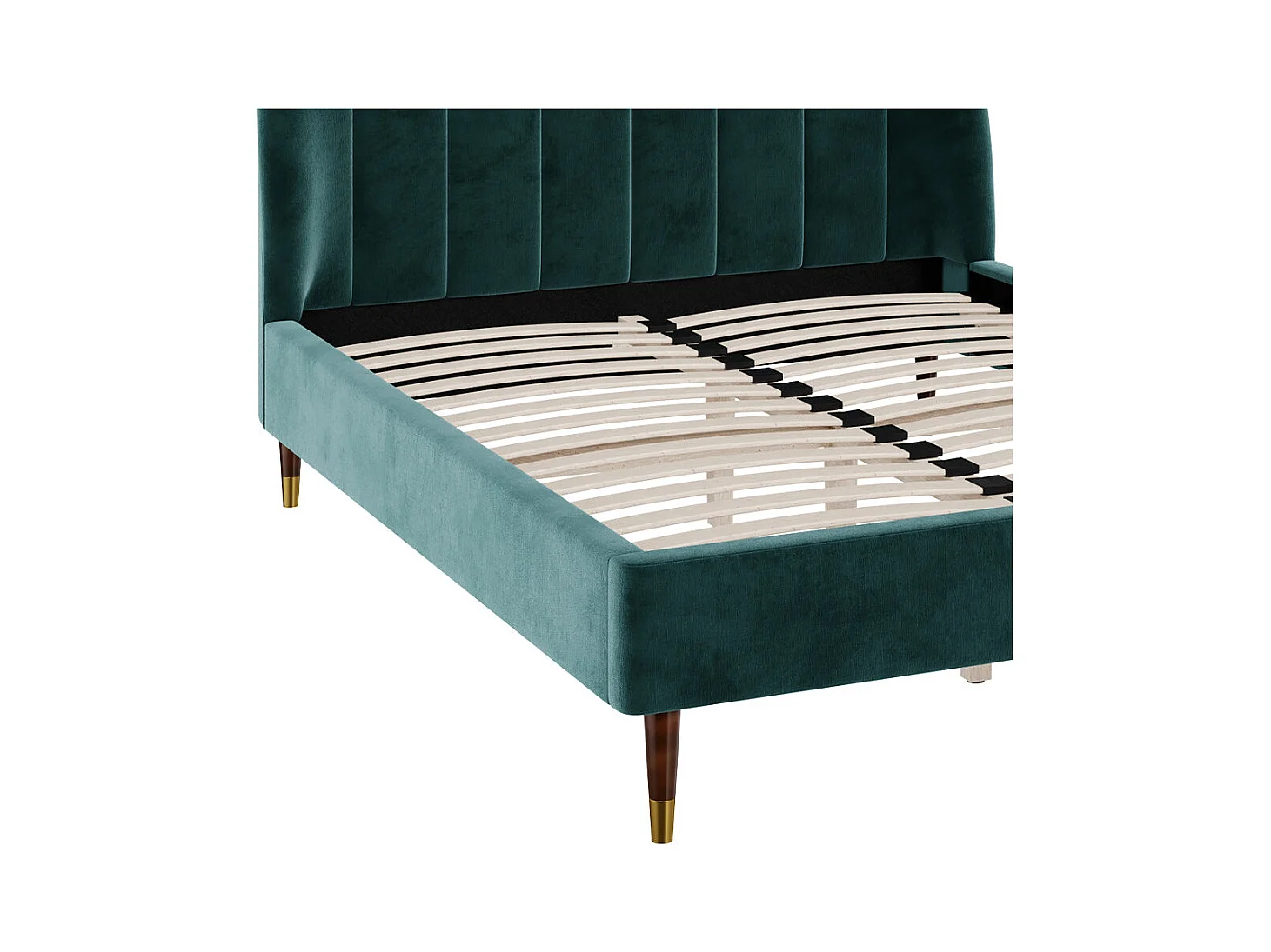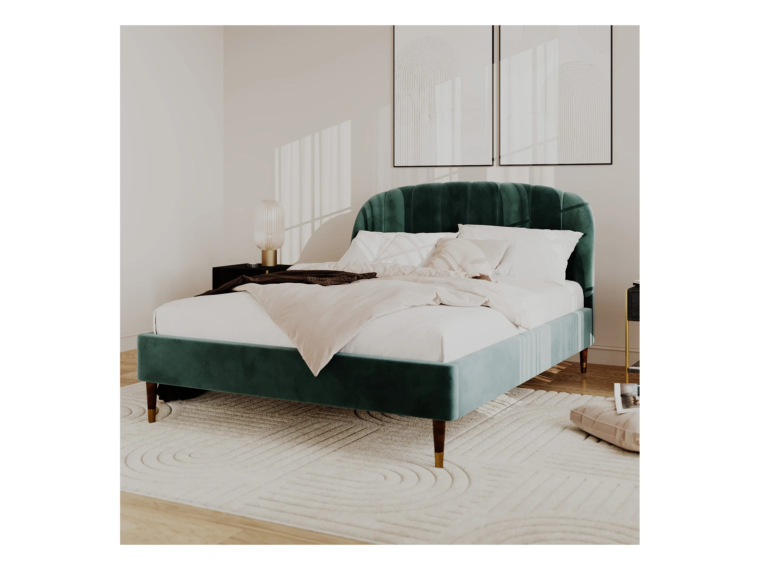 Lit double 140x190 cm en velours vert et pieds doré - Gala