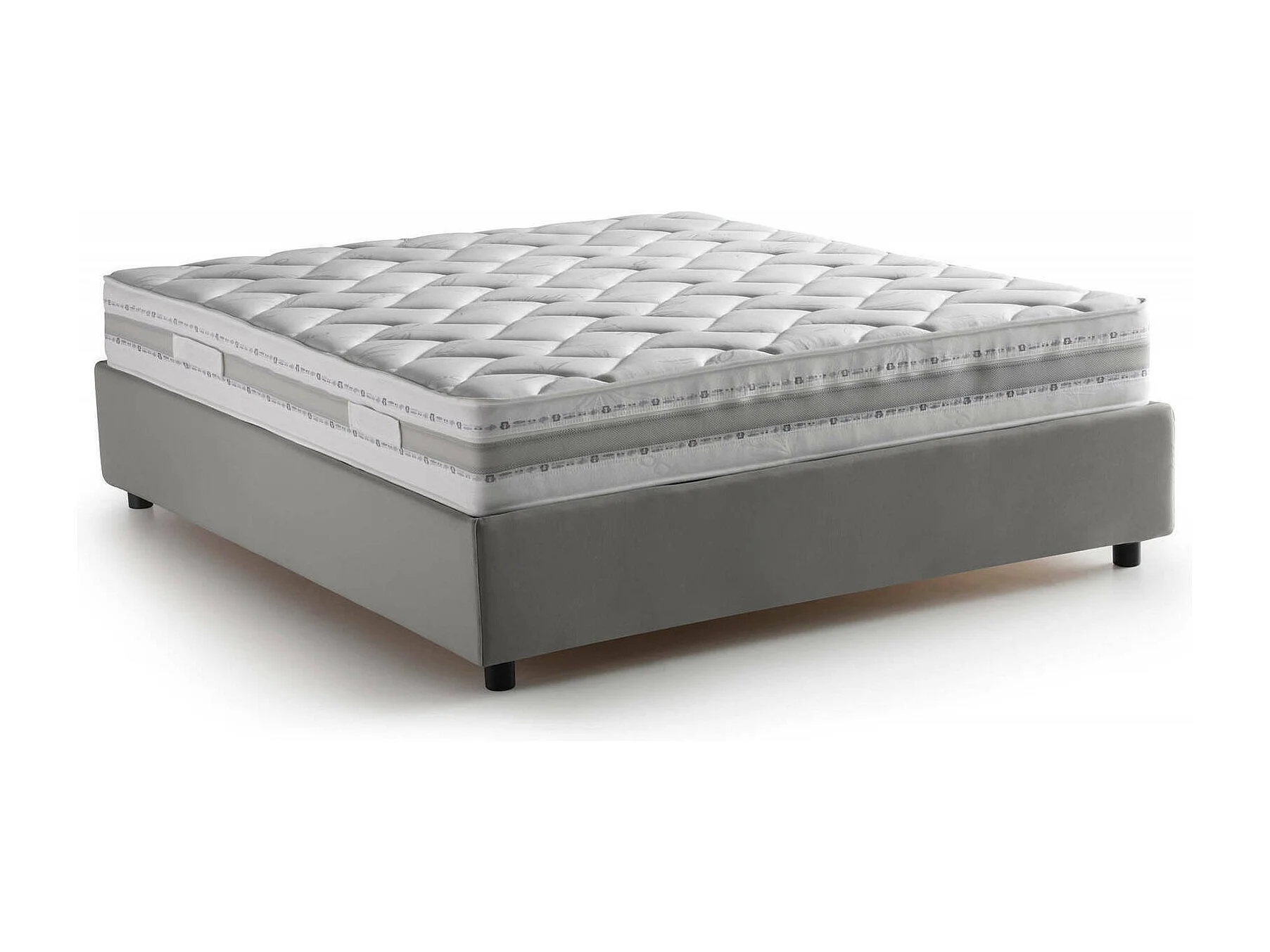 Lit double Gioia, Lit coffre avec revêtement en tissu, 100% Made in Italy, Ouverture frontale, avec matelas 140x200 cm inclus, Gris