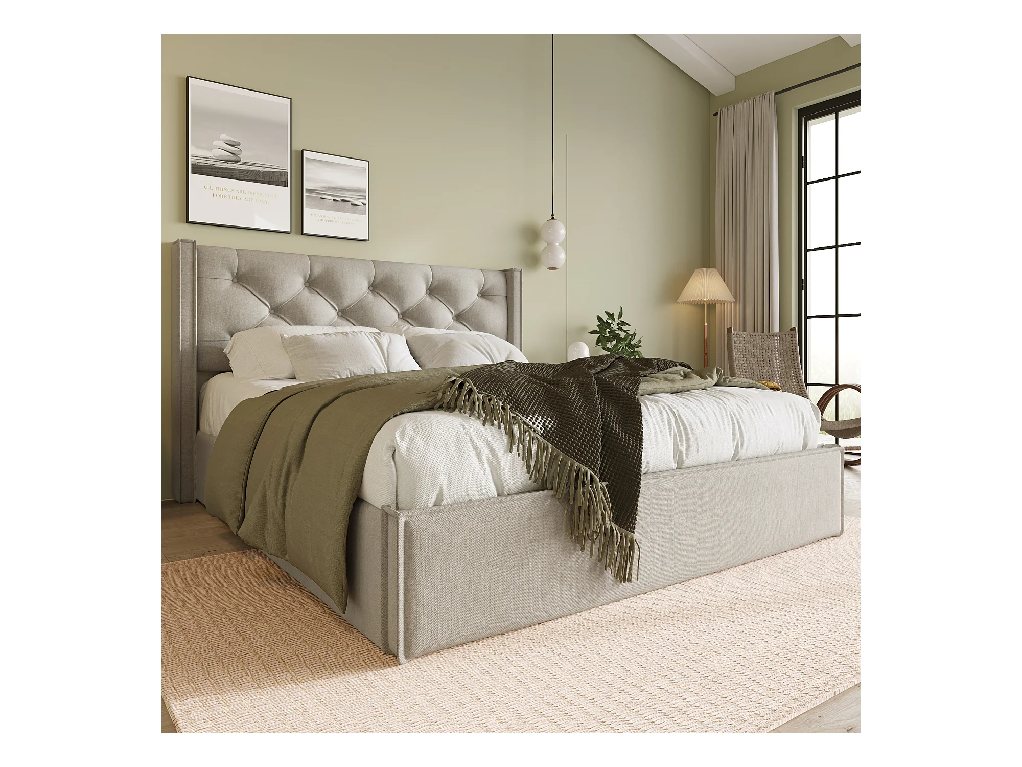 Lit double hydraulique avec cadre en métal et rangement, design élégant, 140x200cm, gris clair