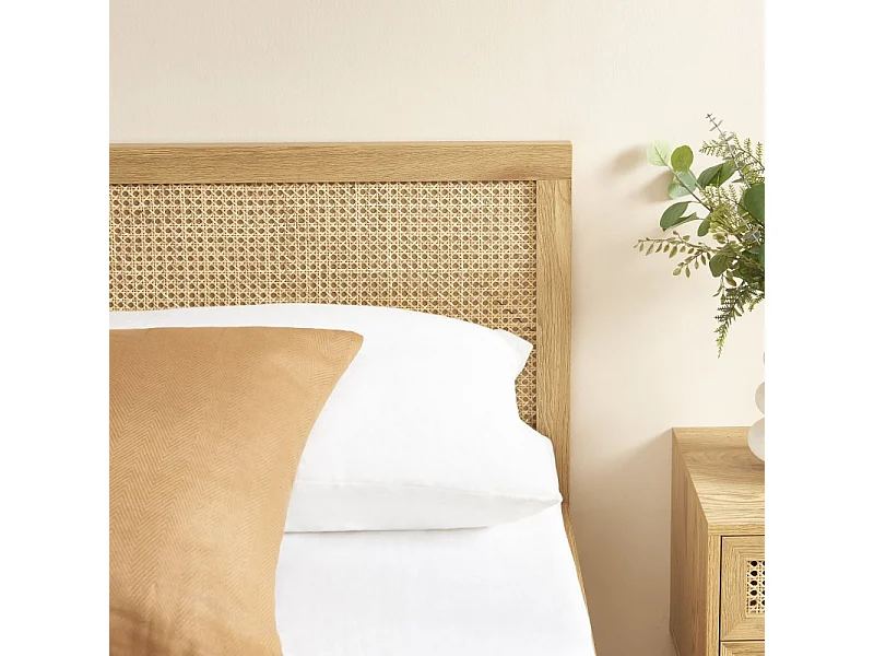 Lit double INES cannage rotin 140x190 sommier inclus