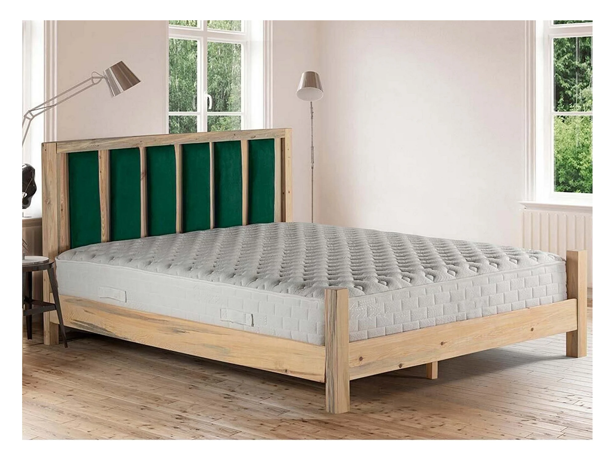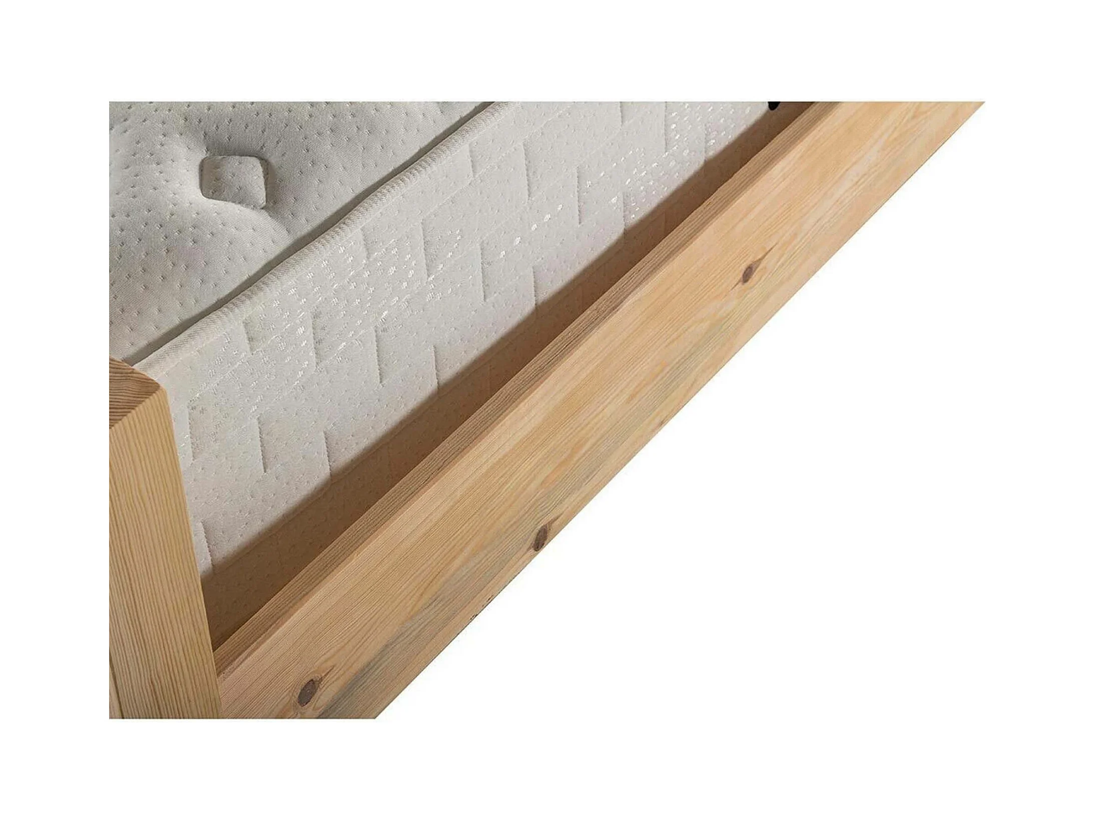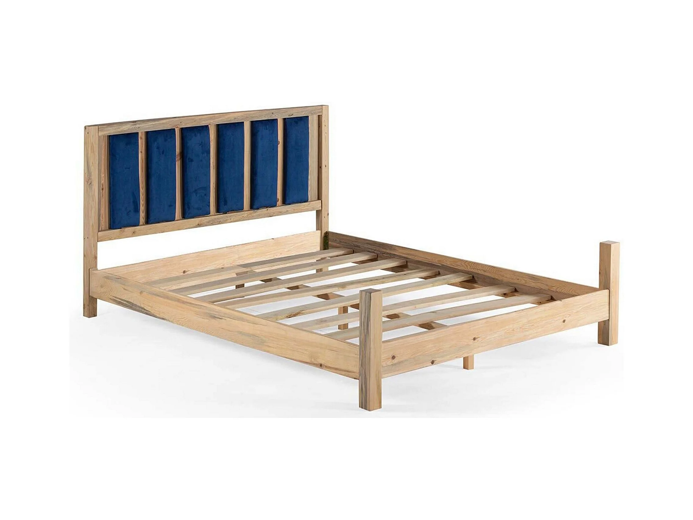 Lit double Kiem 140x200cm Pin massif Clair et Velours Rouge