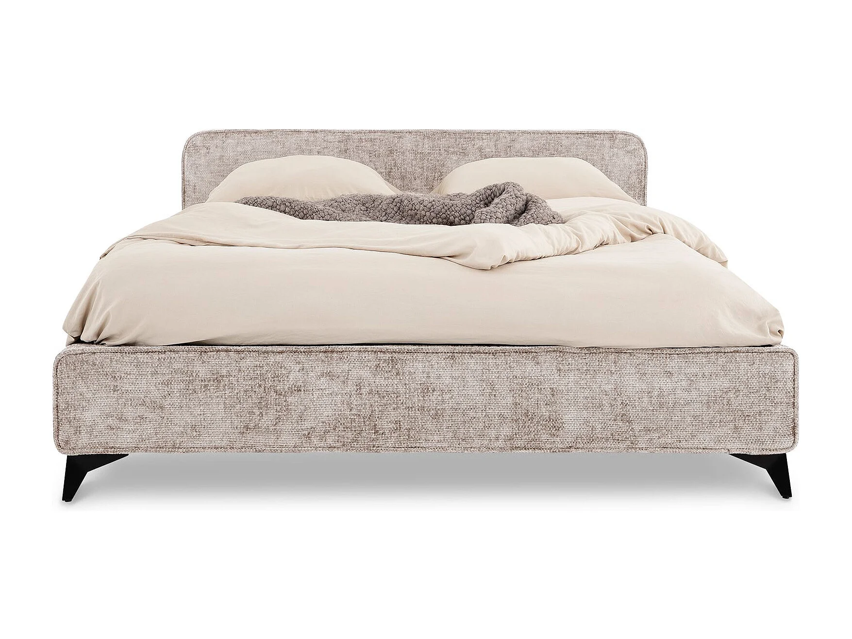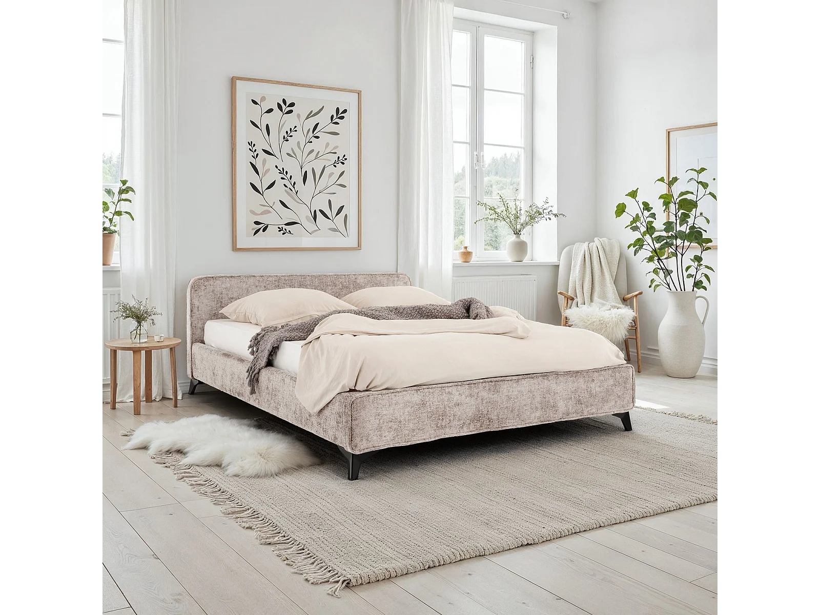 Lit double LEVERDA 140x190 cm, Revêtement en tissu, Lit style moderne pour 2 personnes, Cadre de lit avec sommier inclus, Beige